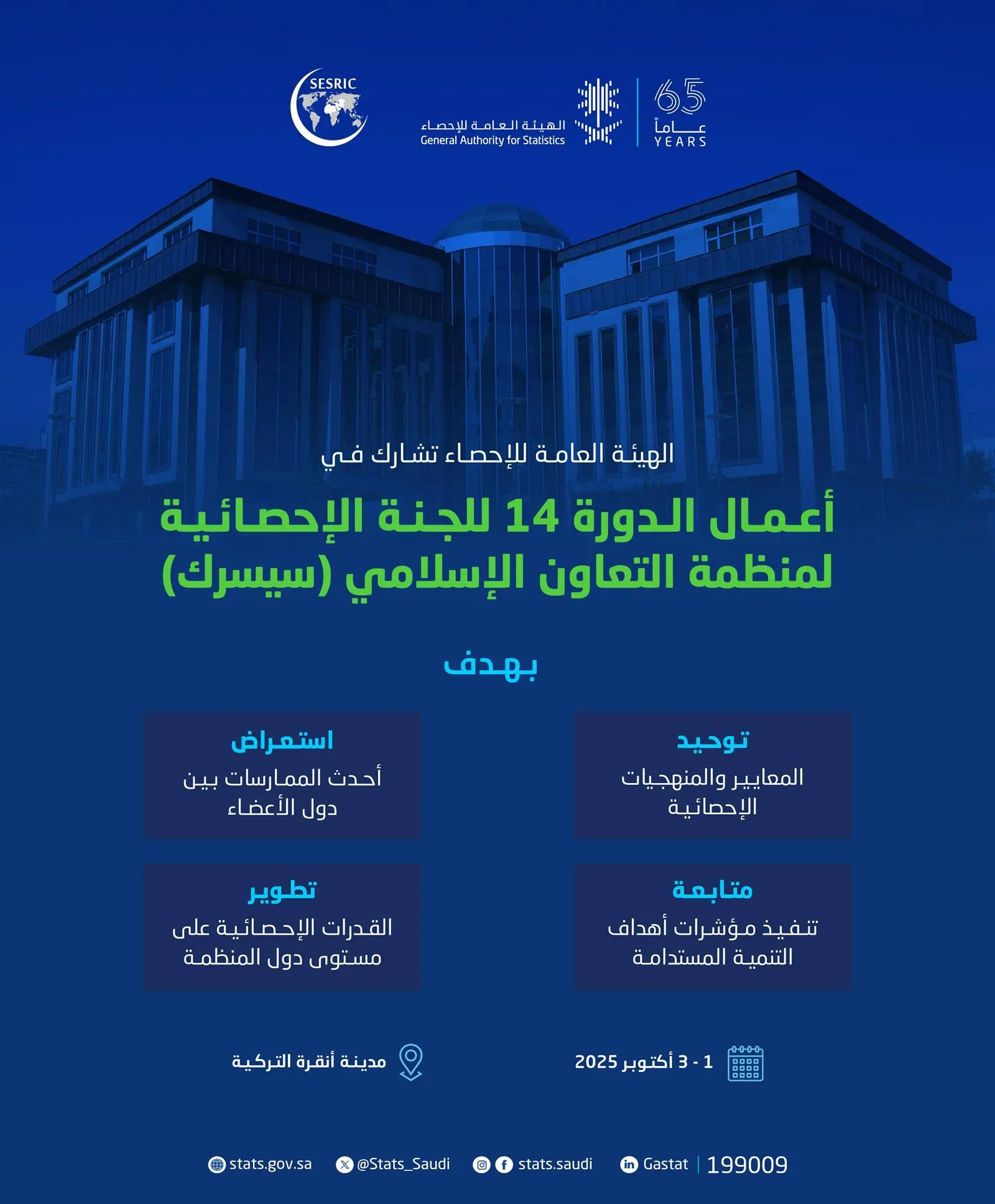 المملكة تشارك في أعمال الدورة الـ14 للجنة الإحصائية لمنظمة التعاون الإسلامي