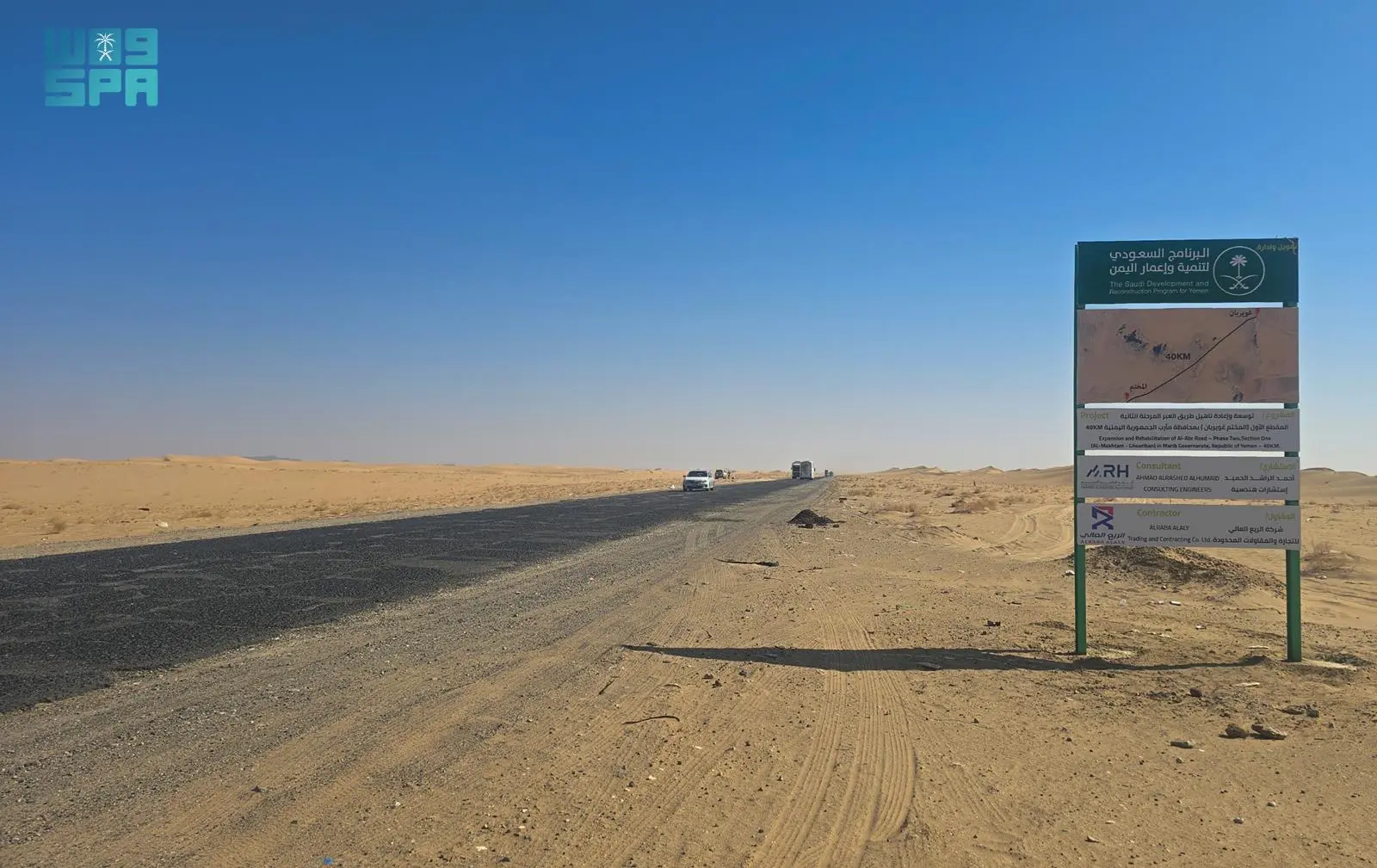 المملكة تعلن بدء مرحلة جديدة من مشروع توسعة وإعادة تأهيل طريق العبر بمأرب