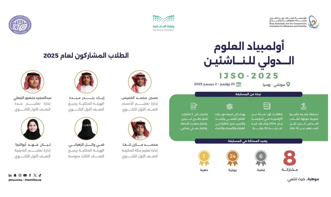 المنتخب السعودي يشارك في أولمبياد العلوم الدولي للناشئين 2025 في روسيا