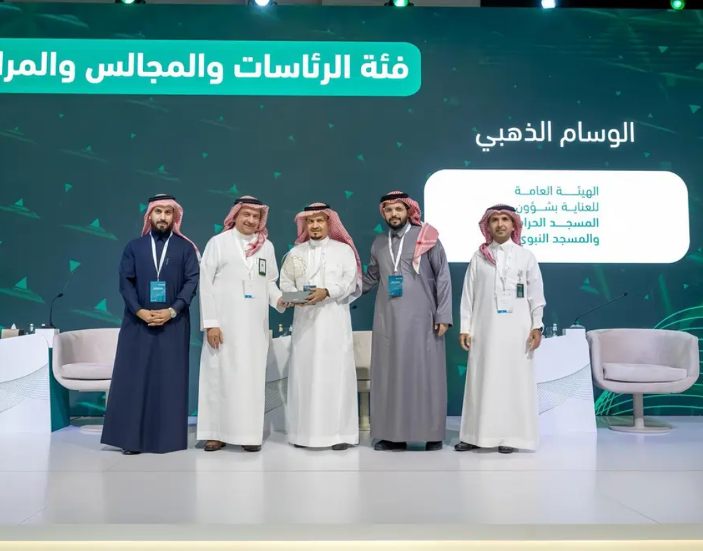 الهيئة العامة للعناية بشؤون المسجد الحرام والنبوي تحصد جائزة وسام الاستحقاق الذهبي في ملتقى التحول إلى الاستحقاق المحاسبي