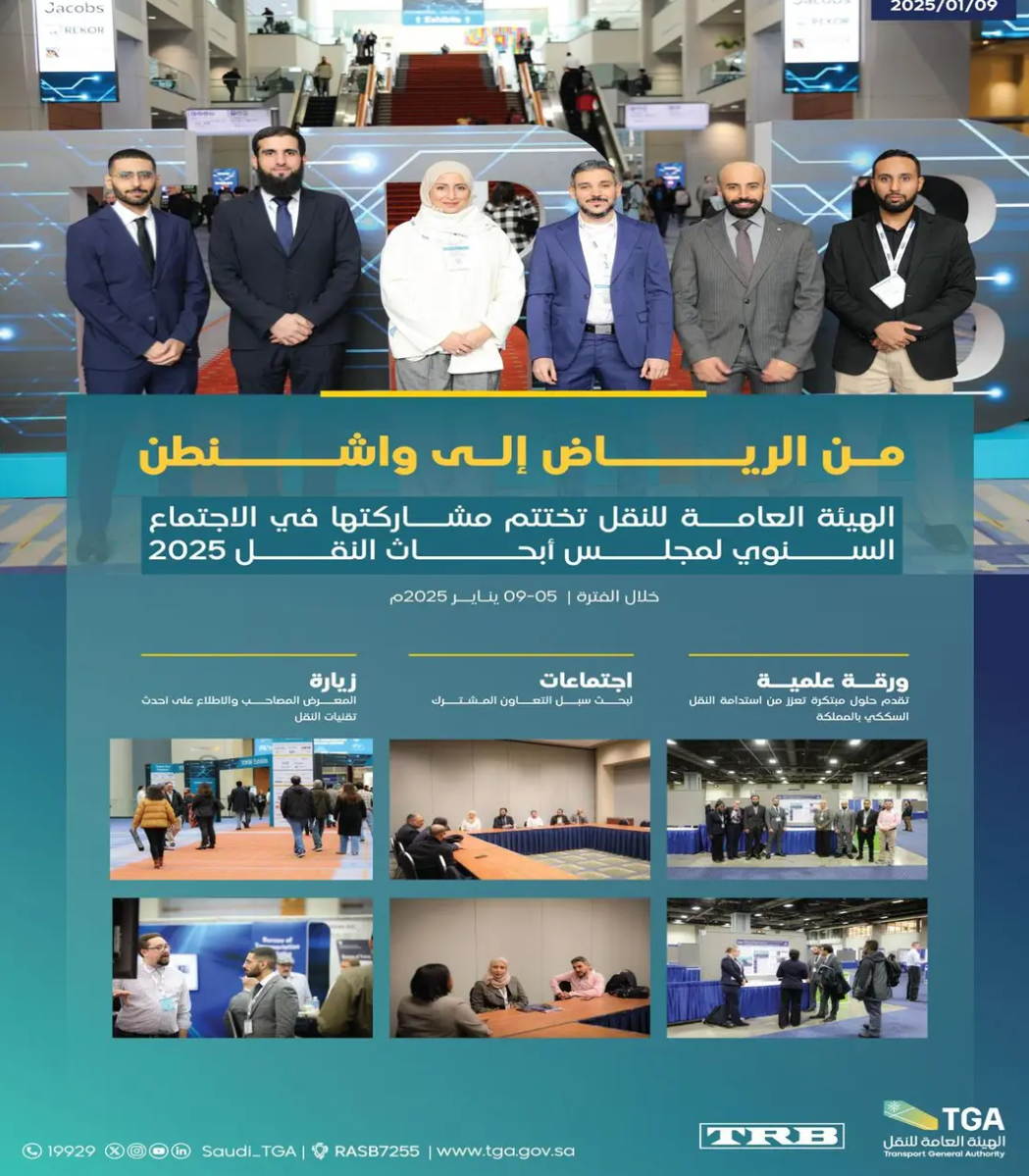 الهيئة العامة للنقل تشارك بورقة علمية خلال الاجتماع السنوي لمجلس أبحاث النقل 2025 في واشنطن