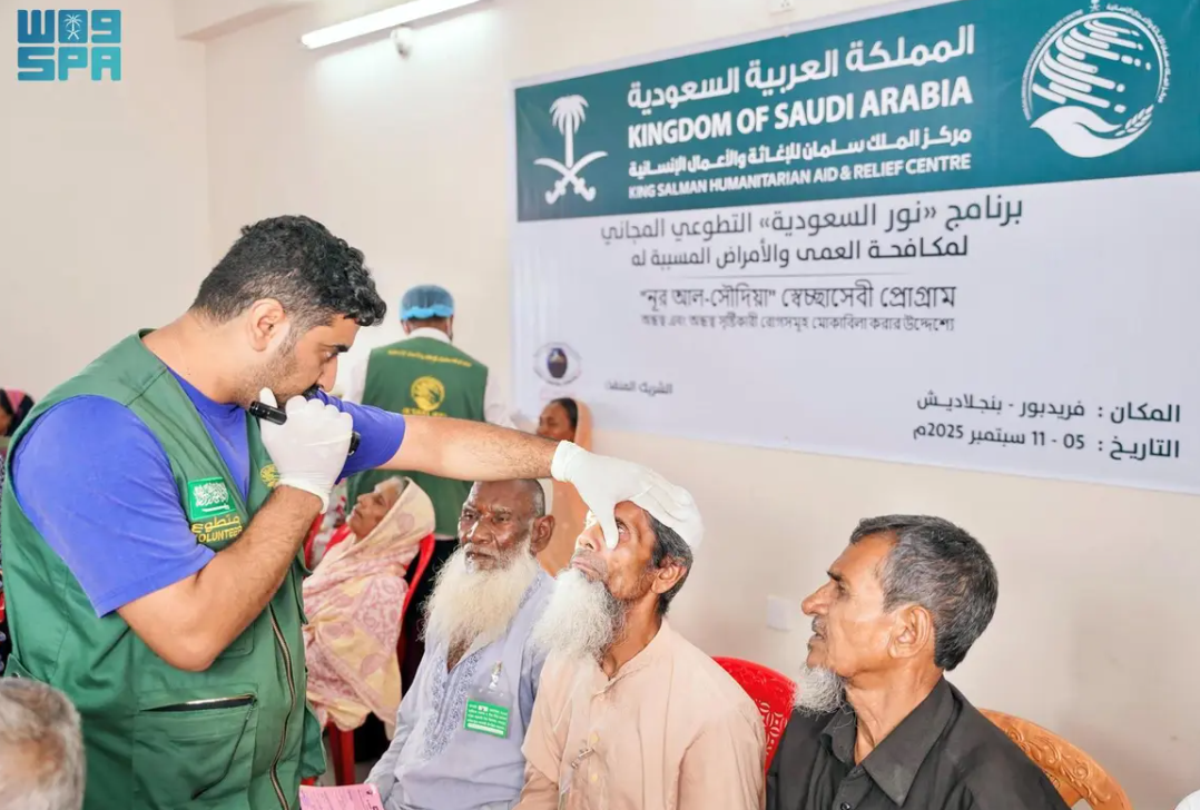 اختتم مركز الملك سلمان للإغاثة والأعمال الإنسانية مشروع نور السعودية التطوعي لمكافحة العمى والأمراض المسببة له، في مدينة فريدبور بجمهورية بنغلاديش الشعبية، والمقام خلال الفترة من (6 حتى 11 سبتمبر 2025م)، بالتعاون مع مؤسسة البصر العالمية.