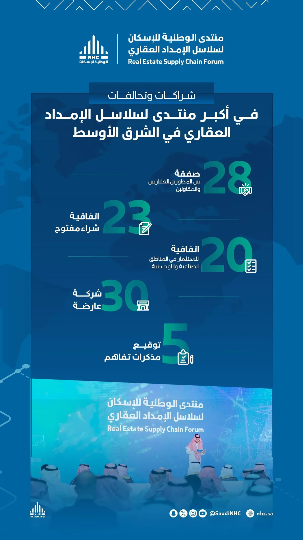 “الوطنية للإسكان” تختتم أعمال منتدى سلاسل الإمداد العقاري بتوقيع 77 اتفاقية
