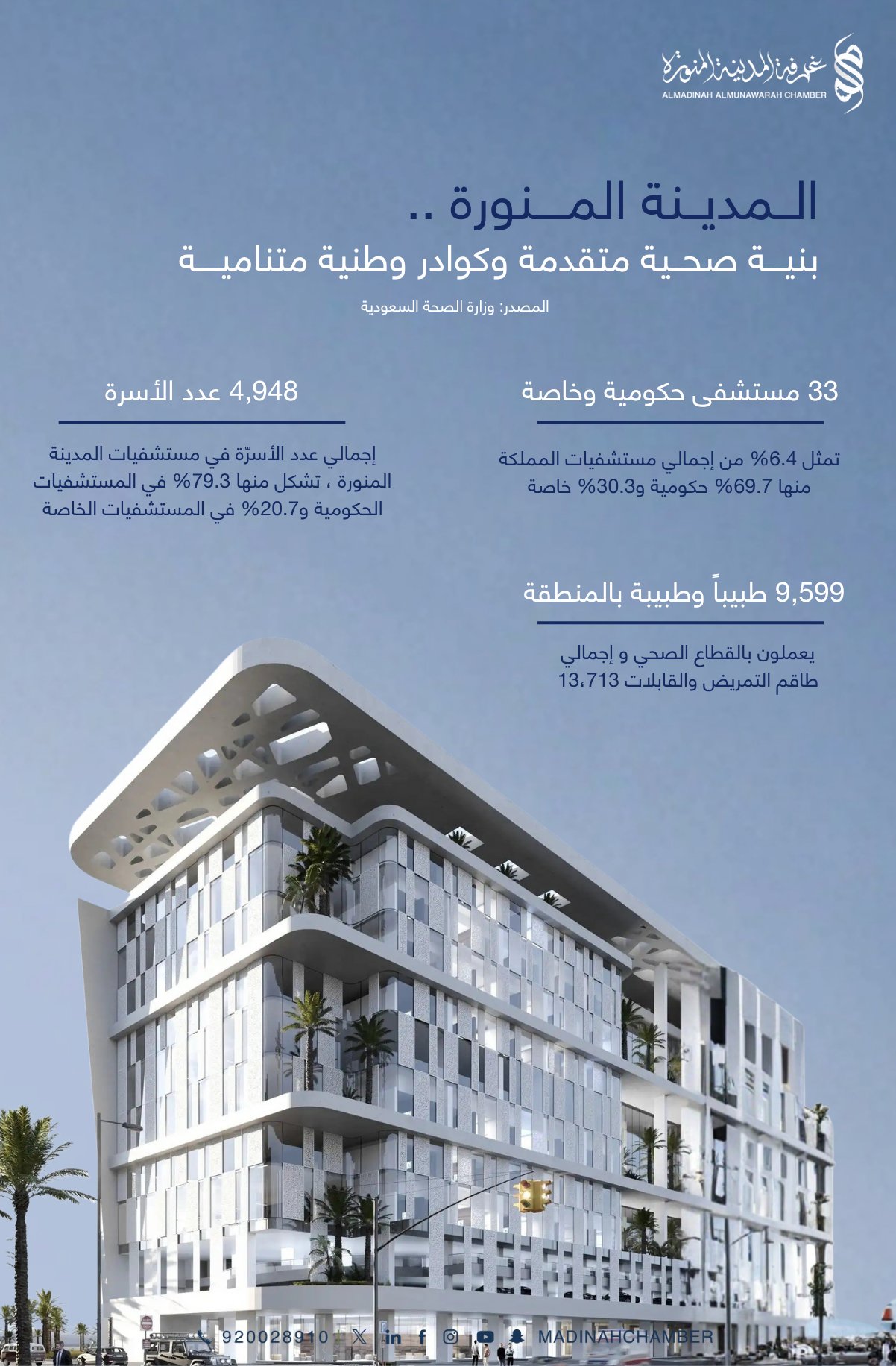 بإجمالي عدد الأسرة (4948) سريرًا .. نمو متسارع في حجم الاستثمارات في القطاع الصحّي بالمدينة المنورة