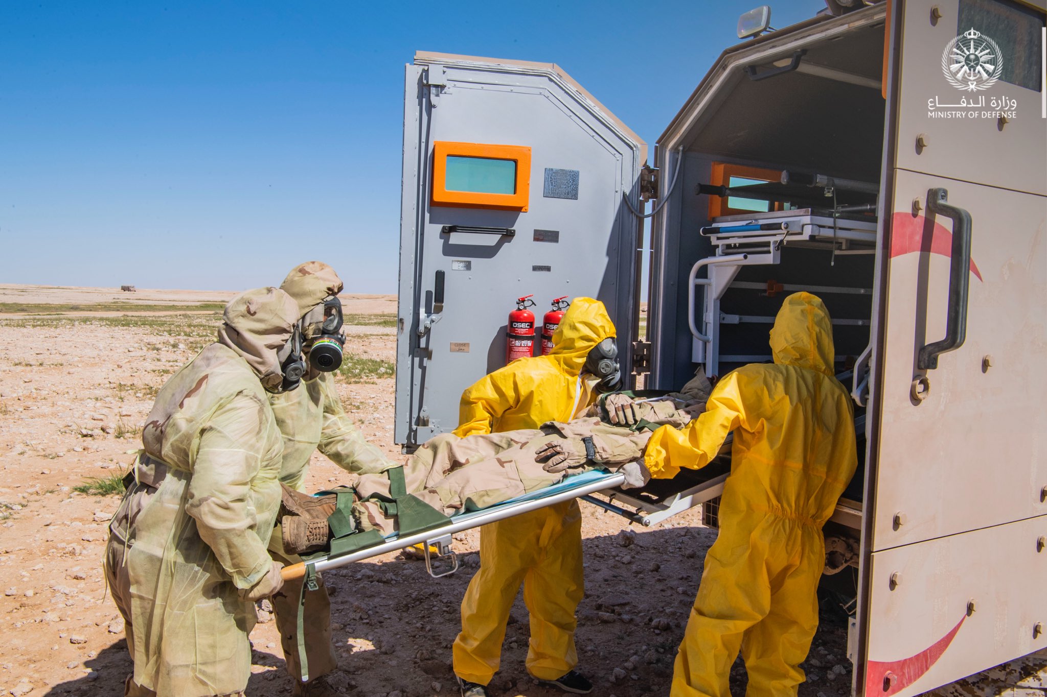 وأوضح أن وحدات الدفاع ضد أسلحة التدمير الشامل في القطاعات المشاركة في التمرين تنفذ تدريبات للتعامل مع تهديدات أسلحة التدمير الشامل سواءً كانت نووية أو إشعاعية أو كيماوية أو بيولوجية؛ حيث يتم تدريب المشاركين على التخطيط وتنفيذ عمليات الدفاع ضد أسلحة التدمير الشامل وتنفيذ العديد من الفرضيات، للتعامل مع عمليات تطهير وإخلاء المصابين حسب سلسلة الإخلاء الطبي بما يتعلق بالتعامل مع أسلحة التدمير الشامل والتدرب على الاستطلاع الكيماوي وإجراءات جمع العينات.