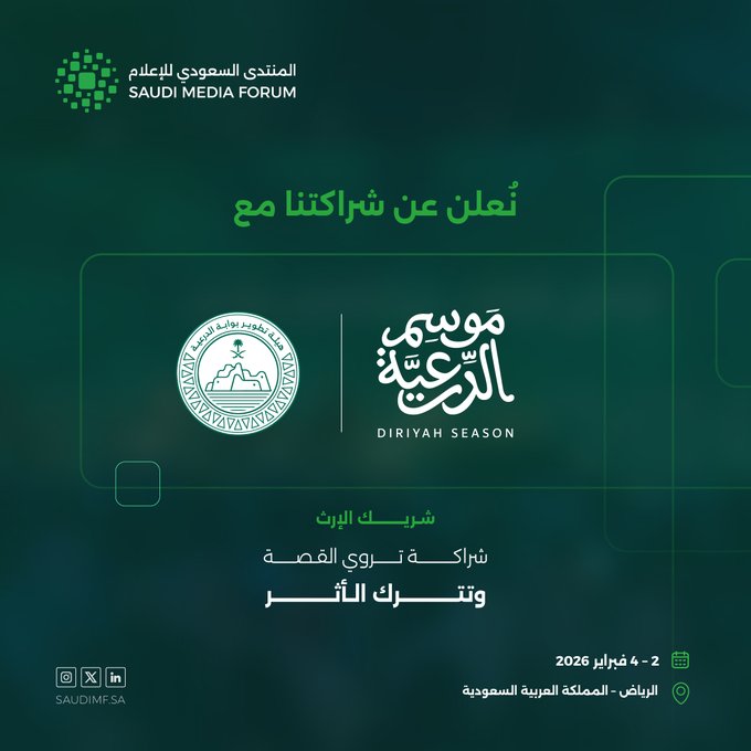بشراكة استراتيجية.. “موسم الدرعية” ينضم كشريك إرث للمنتدى السعودي للإعلام بنسخته الخامسة