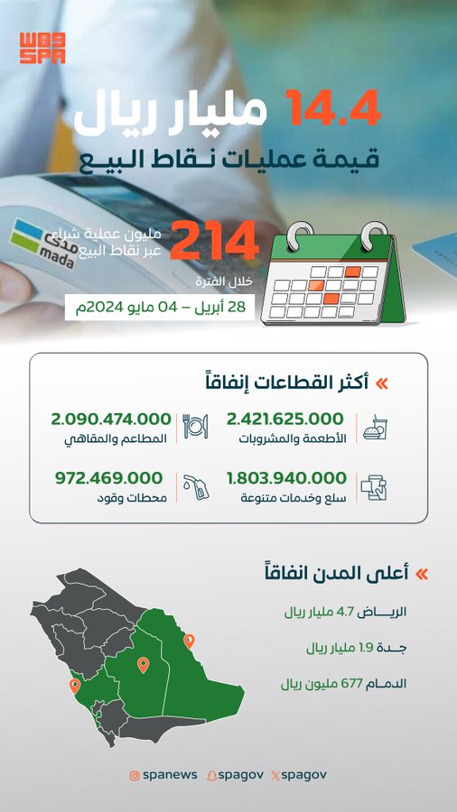 بـ 14 مليار ريال .. تسجيل 214 مليون عملية نقاط بيع في #المملكة