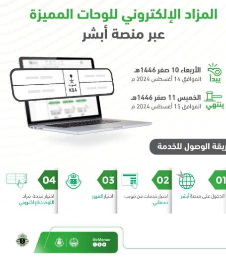 وذلك عبر منصة أبشر التي تمكّن الراغبين في شراء اللوحات المميزة من المشاركة في المزاد إلكترونياً.