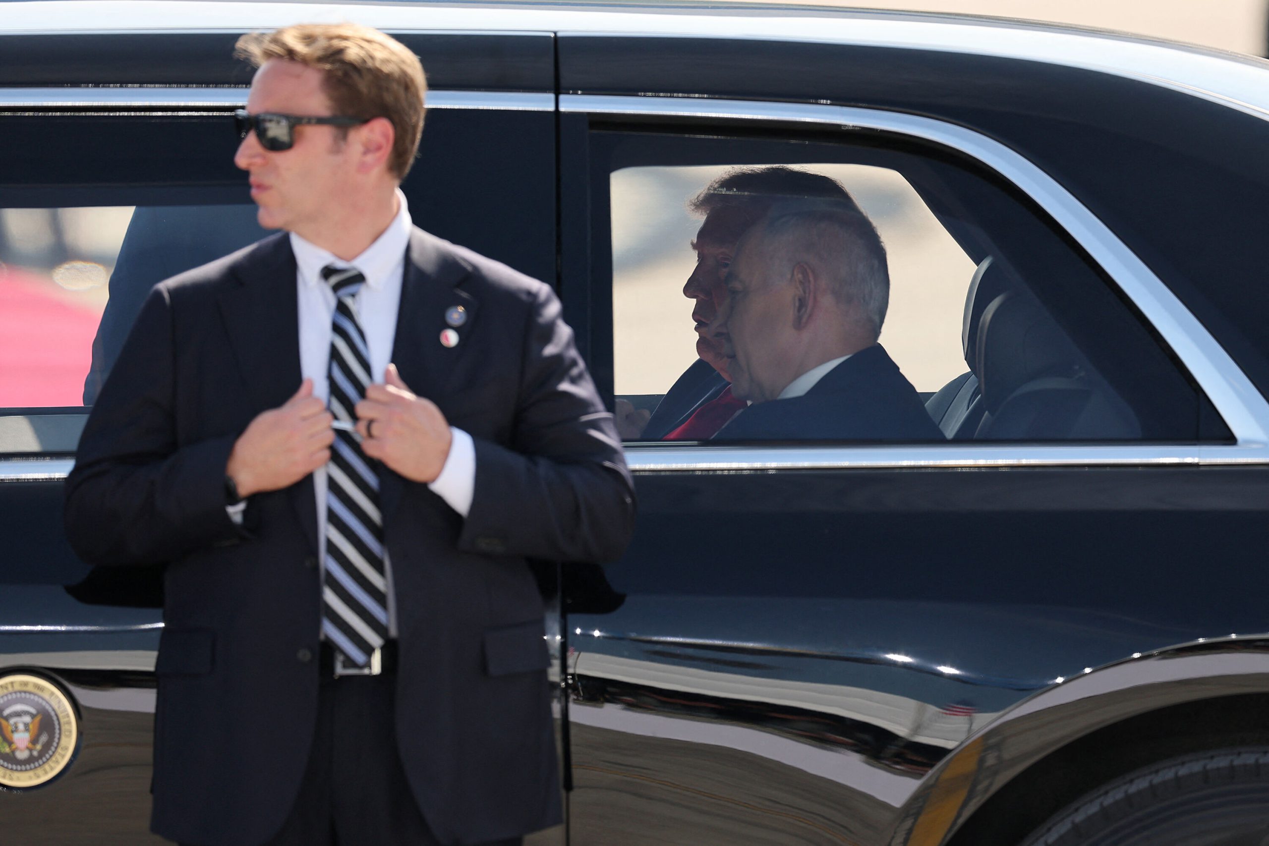 ولدى هبوط طائرة الرئاسة الأميركية في مطار بن جوريون، كان الرئيس الإسرائيلي اسحق هرتسوغ ورئيس الوزراء بنيامين نتنياهو في استقبال الرئيس ترامب. ومن المتوقع أن يلقي ترامب خطاباً في الكنيسيت الإسرائيلي.