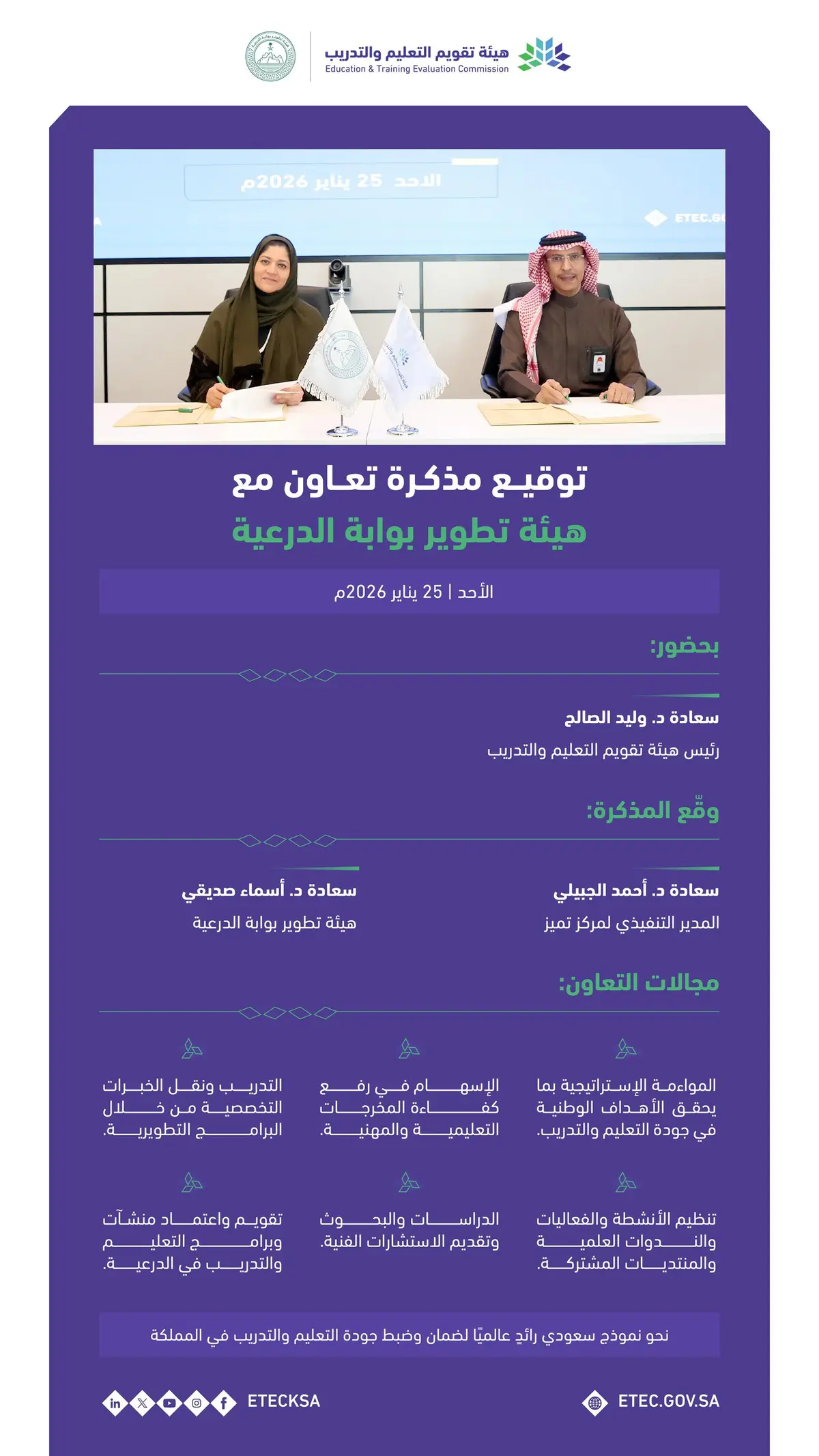 تعاون استراتيجي بين “تقويم التعليم” و”بوابة الدرعية” لتطوير جودة التعليم.