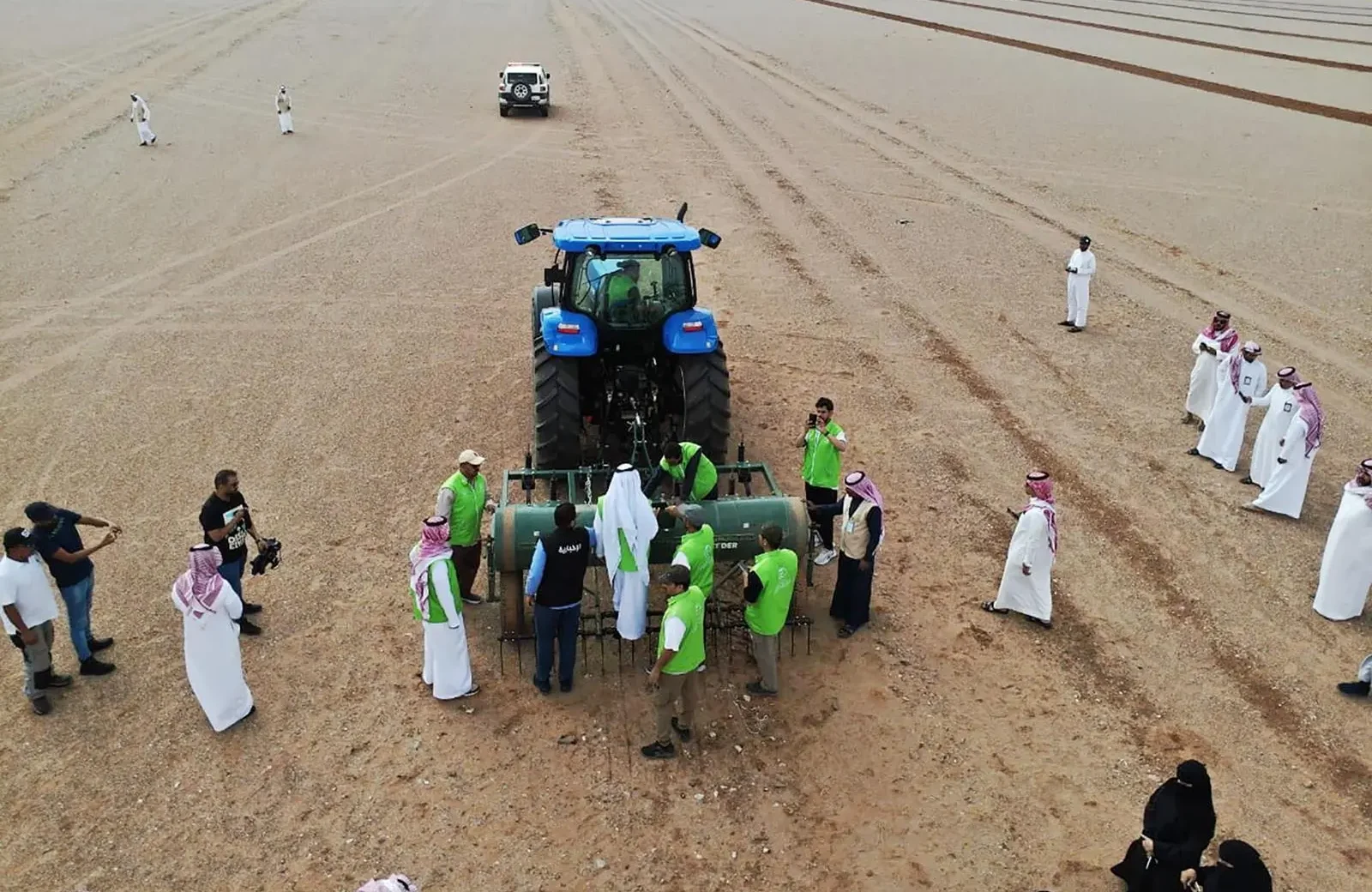 تنفيذ مشروع نثر بذور النباتات الرعوية والأشجار البرية بمرعى حمى الملك عبدالعزيز