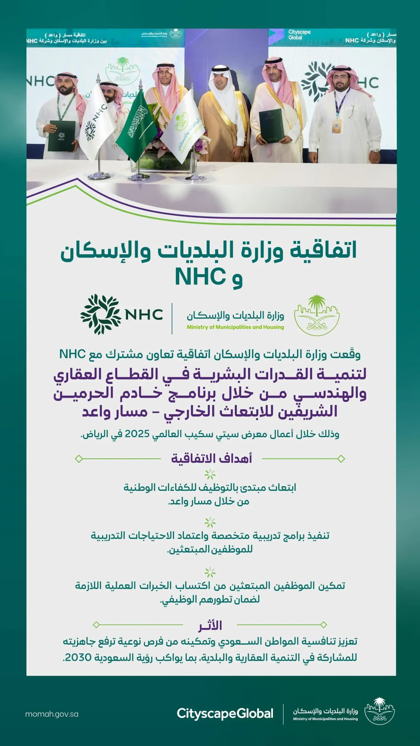 وتُعد هذه الاتفاقية امتدادًا لجهود وزارة البلديات والإسكان في دعم مسارات الابتعاث والتدريب التخصصي، وتمكين الشباب السعودي من فرص نوعية تُسهم في بناء قطاع عمراني متطور يواكب مستهدفات رؤية المملكة 2030 في التنمية البشرية وتعزيز كفاءة سوق العمل.