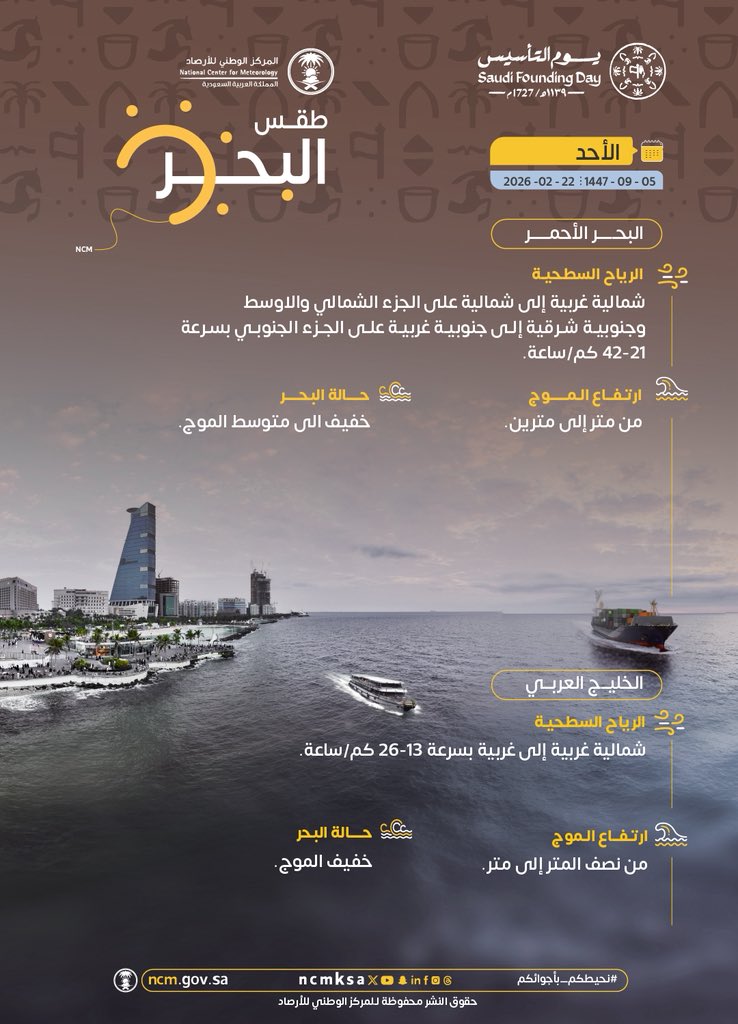 توقّع المركز الوطني للأرصاد في تقريره اليومي عن حالة الطقس –بمشيئة الله تعالى– هطول أمطار خفيفة على أجزاء من المرتفعات الغربية والجنوبية الغربية للمملكة، مع احتمالية تكوّن الضباب خلال الليل وساعات الصباح الباكر على أجزاء من تلك المناطق، إضافة إلى أجزاء من منطقتي الجوف والشرقية.