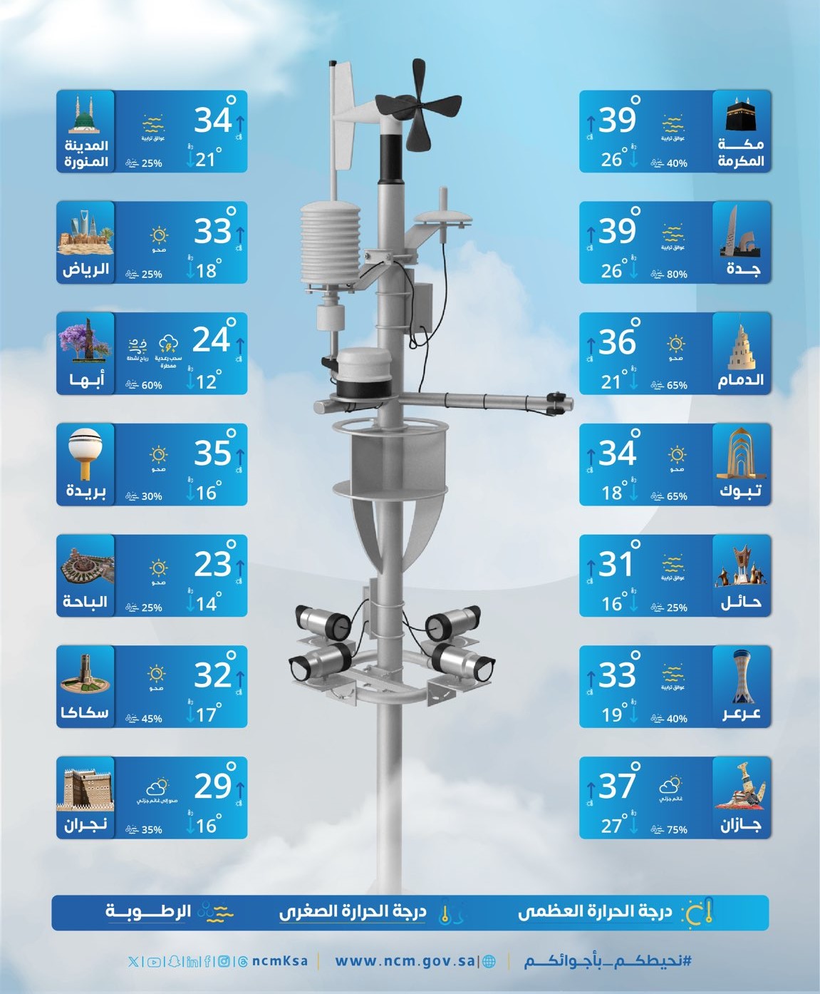 حالة الطقس : استمرار الرياح النشطة والأتربة على عدد من المناطق وفرص لهطول أمطار رعدية جنوبًا #عاجل