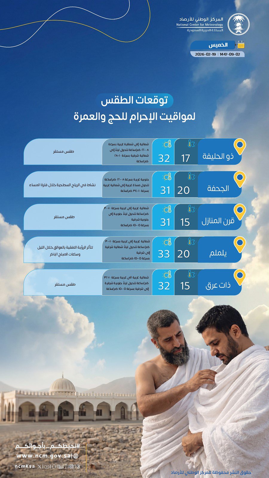 كما أشار التقرير إلى احتمالية تكوّن الضباب خلال ساعات الليل والصباح الباكر على الأجزاء الساحلية من منطقتي مكة المكرمة والمنطقة الشرقية.