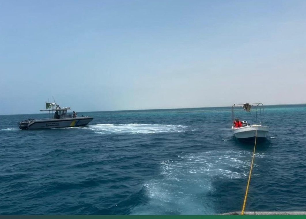 حرس الحدود بمكة المكرمة ينقذ مواطنًا تعطلت واسطته البحرية في عرض البحر.