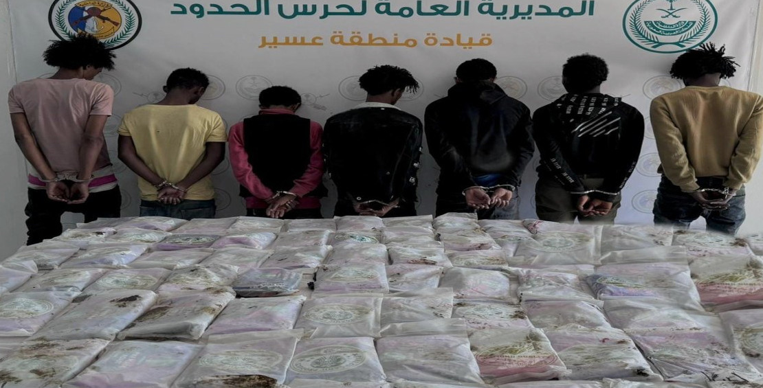 صراحة – جازان : قبضت الدوريات البرية لحرس الحدود في قطاع ظهران الجنوب بمنطقة عسير على (7) مخالفين لنظام أمن الحدود من الجنسية الإثيوبية، لتهريبهم (76) كيلوجراماً من مادة الحشيش المخدر، وجرى استكمال الإجراءات النظامية الأولية بحقهم، وتسليمهم والمضبوطات لجهة الاختصاص.