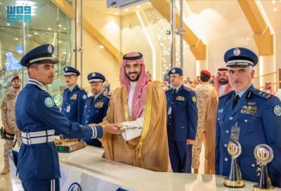 وكان في استقبال سمو وزير الدفاع لدى وصوله صاحب السمو الأمير عبدالرحمن بن محمد بن عياف نائب وزير الدفاع، ومعالي رئيس هيئة الأركان العامة الفريق الأول الركن فياض بن حامد الرويلي، وسمو قائد القوات الجوية الفريق الركن تركي بن بندر بن عبدالعزيز، وقائد كلية الملك فيصل الجوية اللواء الطيار الركن حازم بن عبدالرحمن بن غشيان.