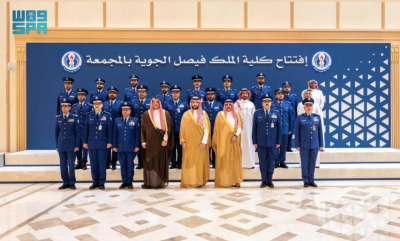 تحت رعاية كريمة من صاحب السمو الملكي الأمير محمد بن سلمان بن عبدالعزيز آل سعود ولي العهد رئيس مجلس الوزراء -حفظه الله- ونيابةً عن سموه الكريم؛ افتتح صاحب السمو الملكي الأمير خالد بن سلمان بن عبدالعزيز وزير الدفاع، اليوم، مرافق كلية الملك فيصل الجوية في المجمعة، كما شهد حفل تخريج الدفعة (103) من طلبة الكلية، بحضور نائب رئيس مجلس الوزراء ووزير الدولة لشؤون الدفاع بدولة قطر الدكتور خالد بن محمد العطية، وعدد من أصحاب السمو والمعالي والسعادة، وكبار المسؤولين من الدول الشقيقة والصديقة، وأولياء أمور الخريجين.