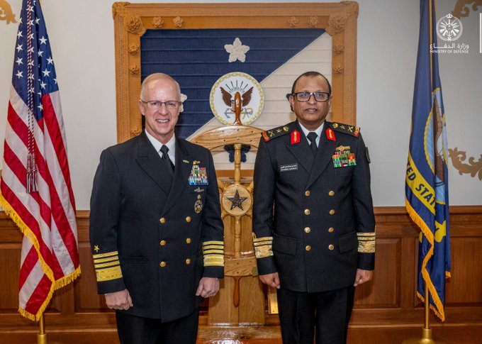التقى معالي رئيس أركان القوات البحرية الفريق الركن محمد الغريبي، ضمن زيارته الرسمية للولايات المتحدة الأمريكية، برئيس العمليات البحرية الأمريكية الفريق أول داريل كودل.