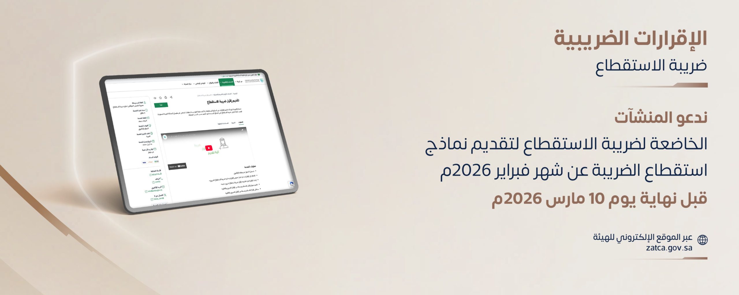 “زاتكا” تدعو المنشآت الخاضعة لضريبة الاستقطاع لتقديم نماذج استقطاع الضريبة عن شهر فبراير