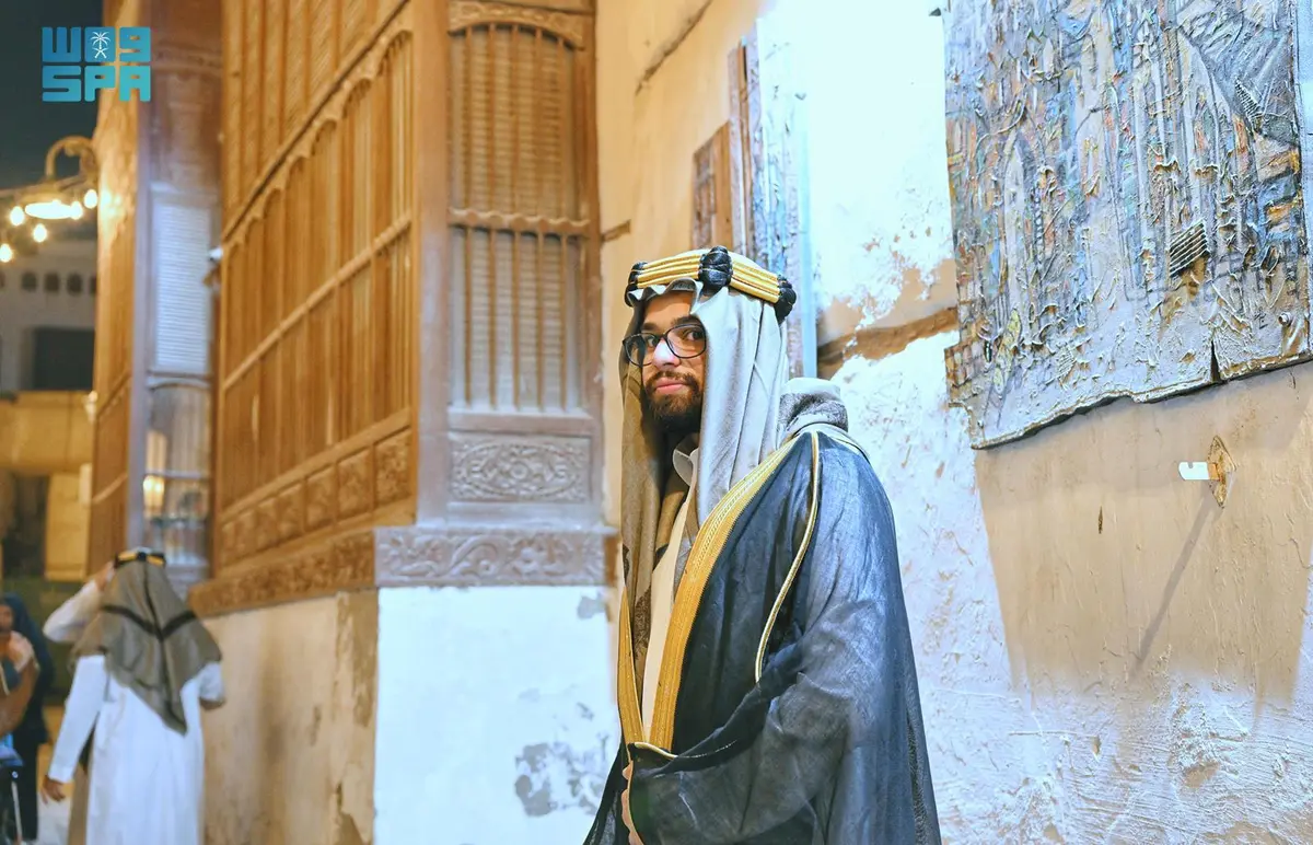 زوار #جدة_التاريخية يتزينون بألوان الزيّ التراثي السعودي #يوم_التأسيس