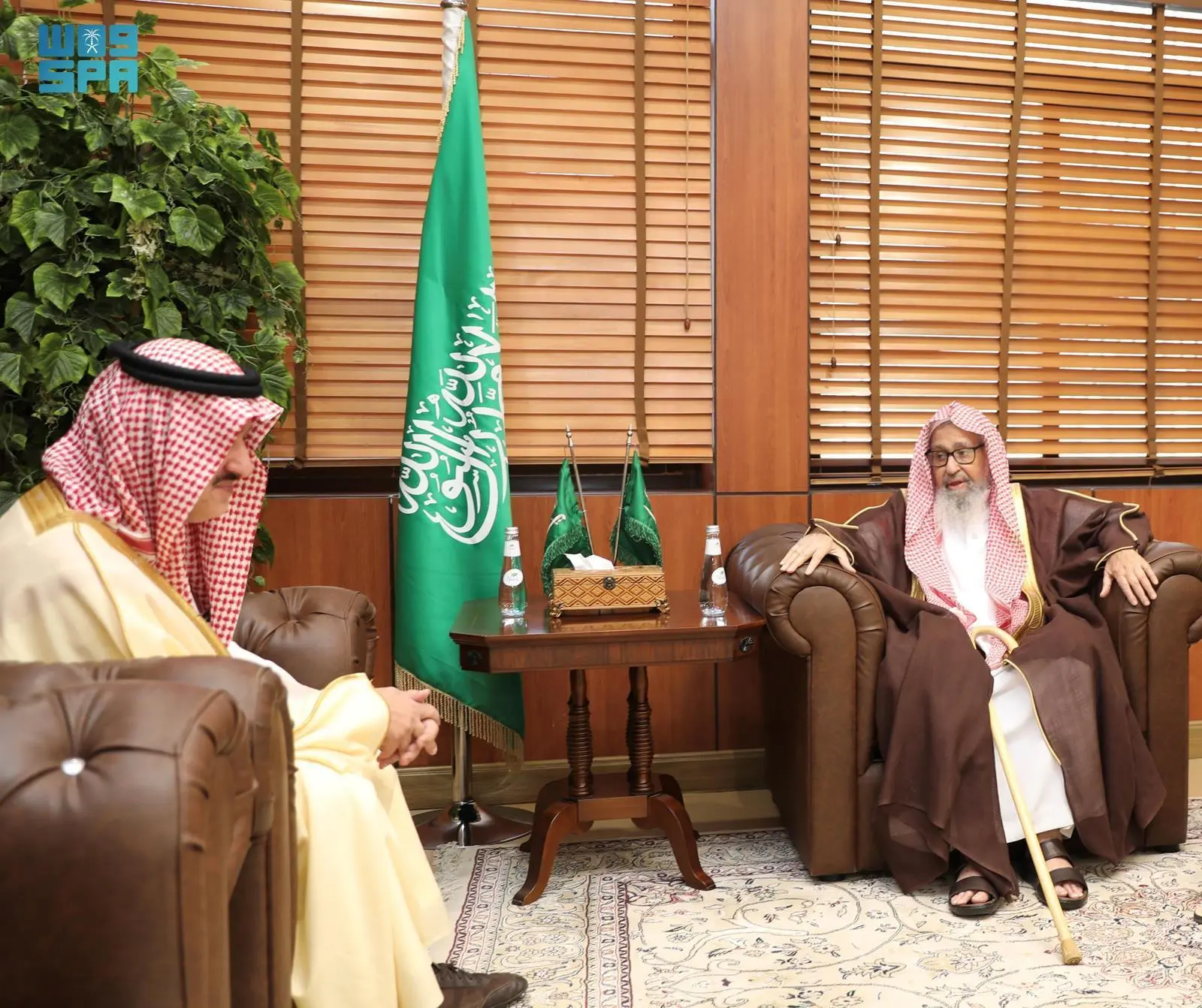 وهنأ سموه سماحته بالثقة الملكية بتعيينه مفتيًا عامًا للمملكة ورئيسًا لهيئة كبار العلماء، ورئيسًا للبحوث العلمية والإفتاء، سائلًا الله تعالى له مزيدًا من التوفيق.