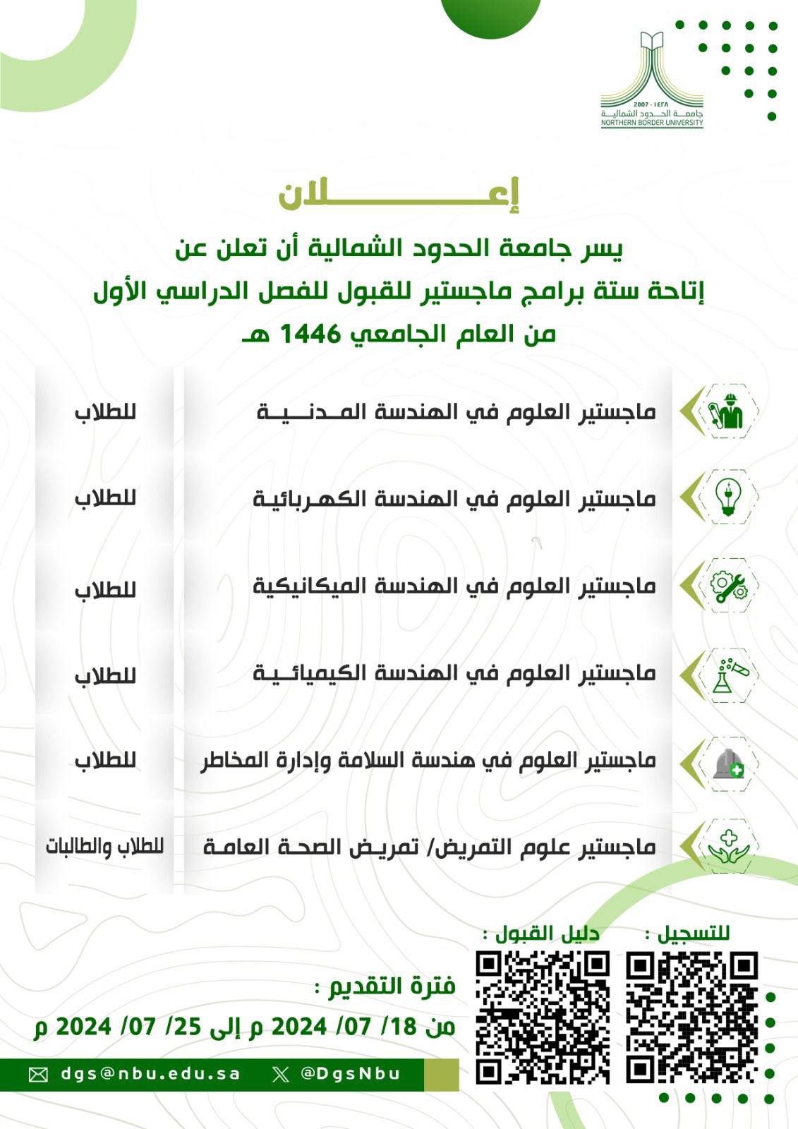 للتسجيل: postgraduate.nbu.edu.sa/auth/sign-in