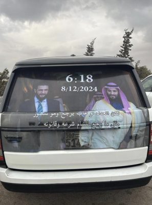كما ظهرت في مختلف المناطق ملصقات كبيرة تحمل صور صاحب السمو الملكي الأمير محمد بن سلمان بن عبدالعزيز آل سعود، ولي العهد رئيس مجلس الوزراء، إلى جانب صور الرئيس السوري أحمد الشرع، في تعبير رمزي عن الدور الذي يرى المواطنون أنه مؤثر في مستقبل البلاد والعلاقات الإقليمية.