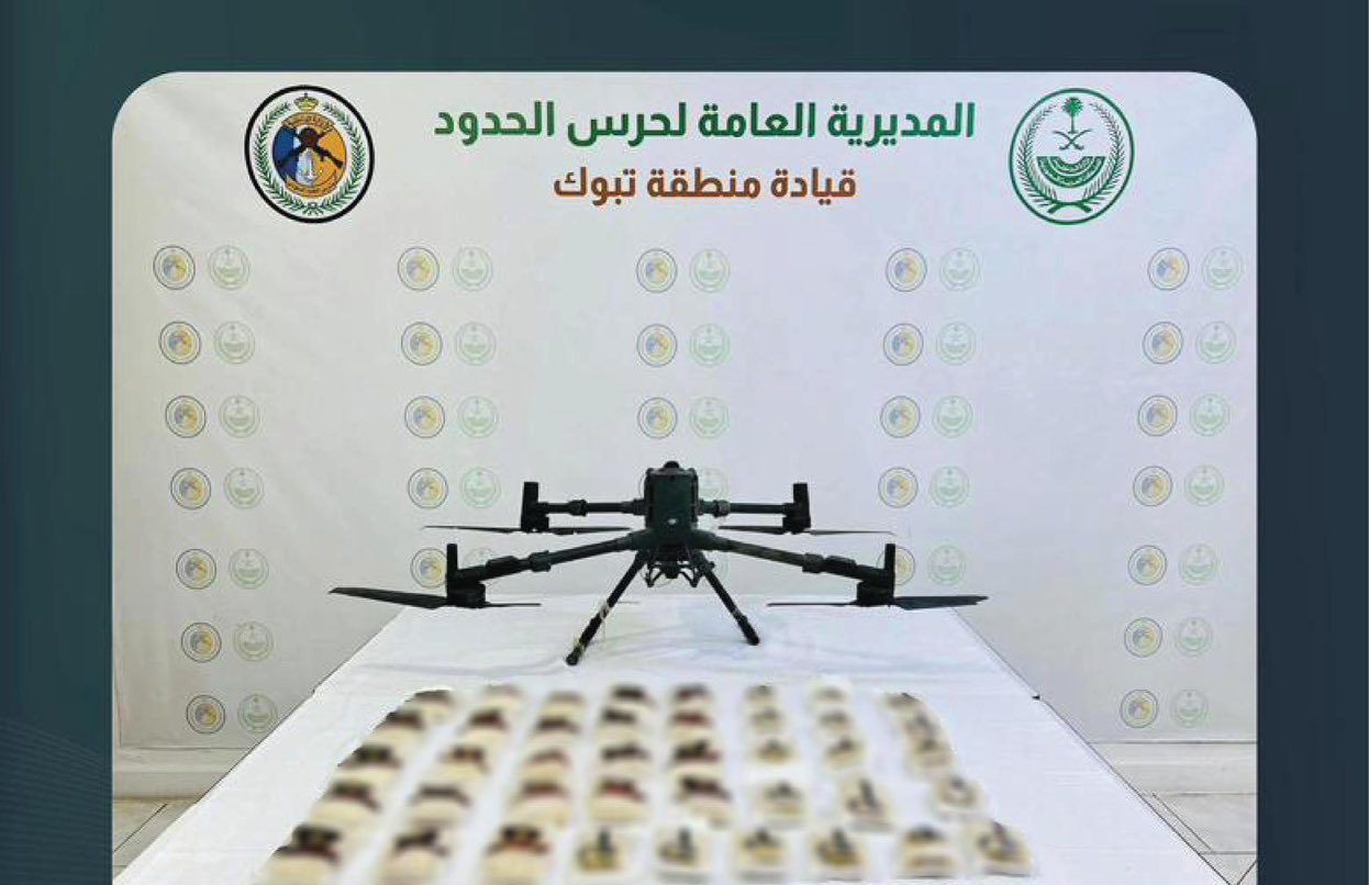 أحبطت الدوريات الساحلية لحرس الحدود في قطاع حقل بمنطقة تبوك محاولة تهريب (41,000) قرص من مادة الإمفيتامين المخدر، وذلك باستخدام طائرة دون طيار (درون).