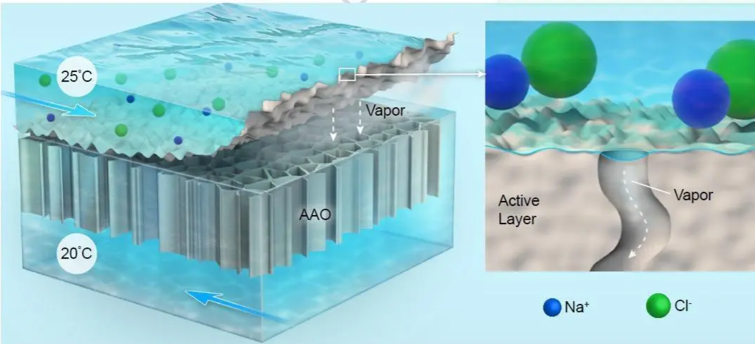ويقدّم البحث أغشية رقيقة طاردة للماء ذات مسامات بمقياس دون النانومتر لعمليات التقطير الغشائي، ومصممة للسماح بمرور بخار الماء مع حجب الأملاح والملوثات بكفاءة عالية، مع الحفاظ على معدلات فائقة لرفض الأملاح حتى عند معالجة محاليل ملحية يصعب عادةً التعامل معها وتكون مكلفة.