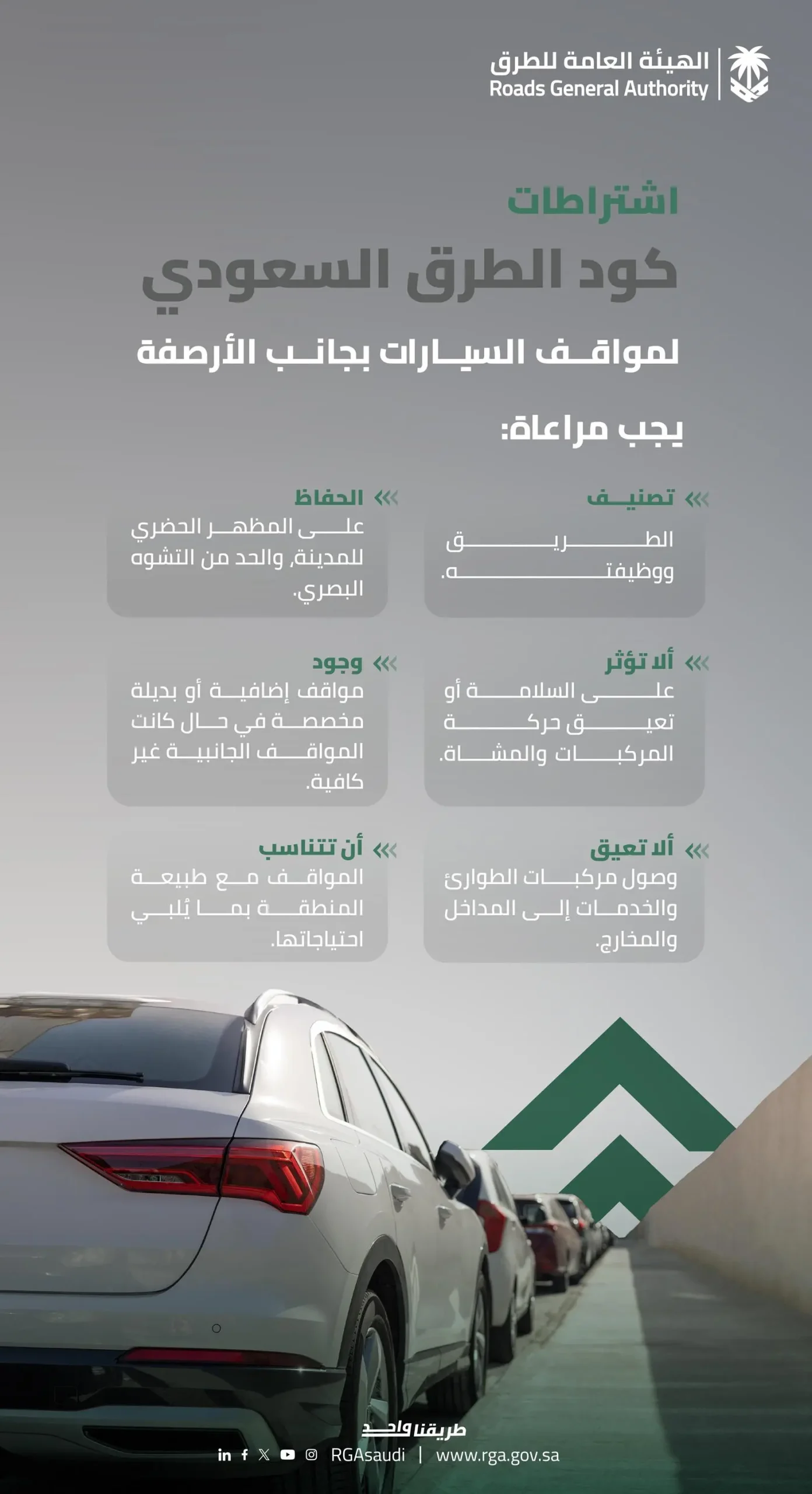 كود الطرق السعودي يحدد اشتراطات مواقف السيارات الجانبية