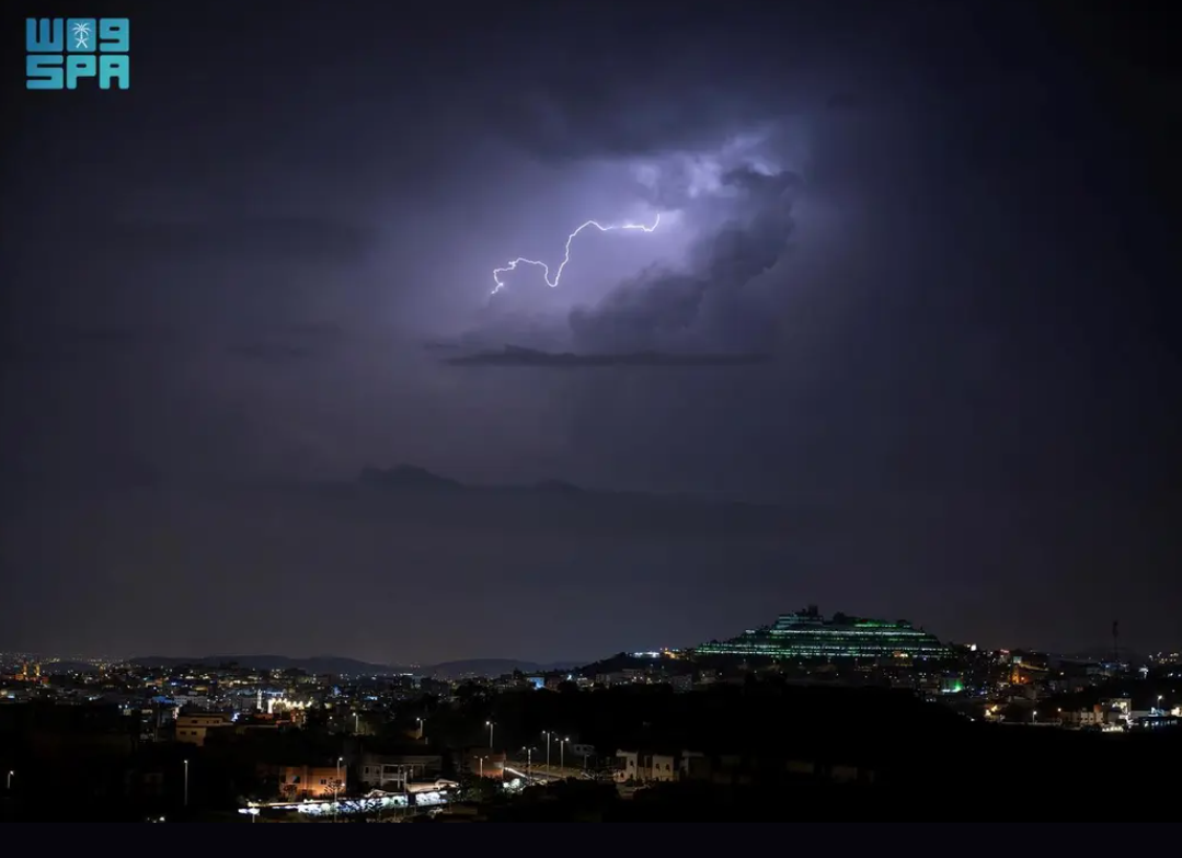 ورصدت عدسة “واس” هذه المناظر الفريدة التي جمعت بين أضواء أبها والبرق والضباب.