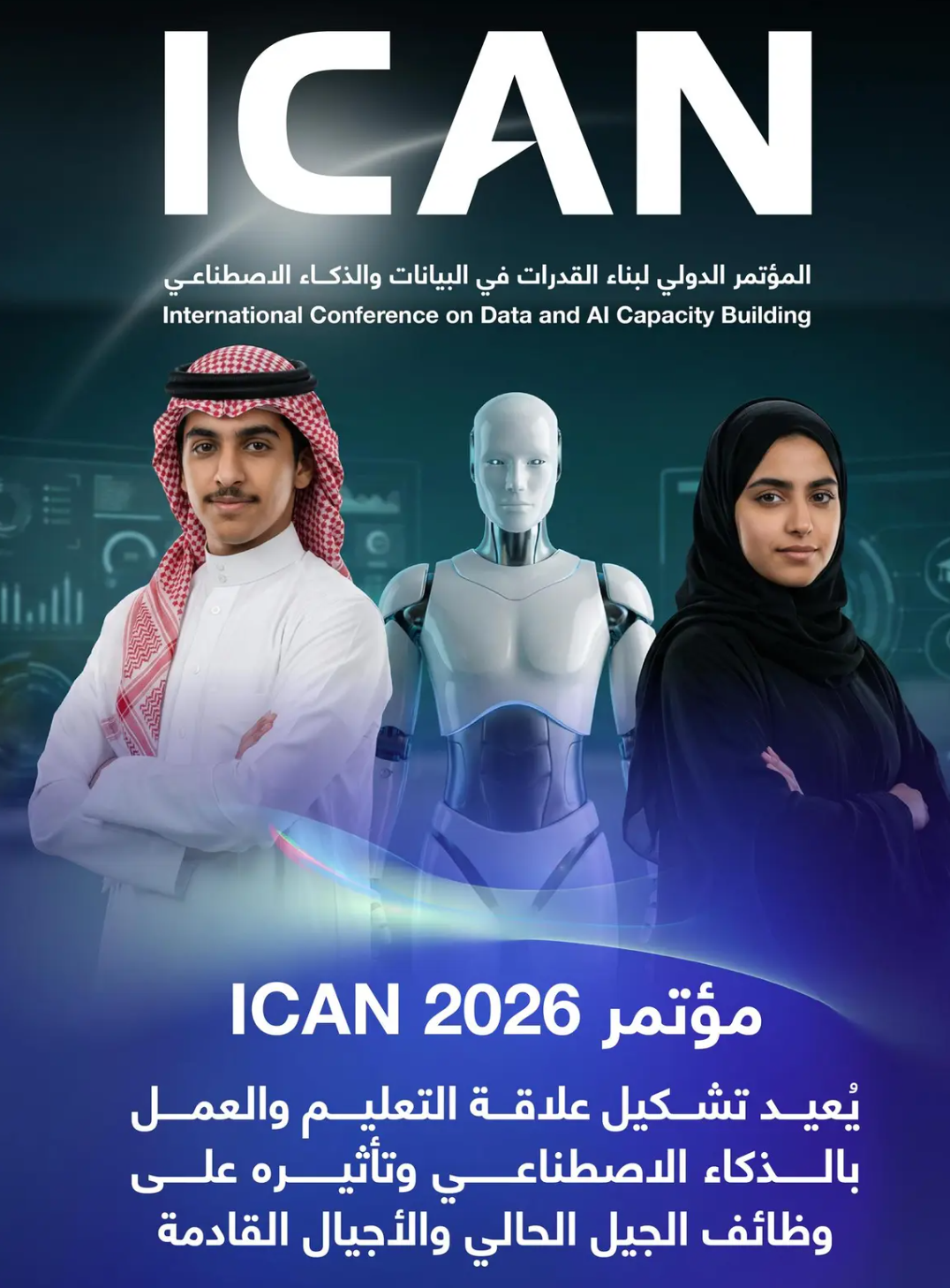 وتبرز أهمية مؤتمر ICAN 2026 في سعيه إلى إعادة صياغة مفهوم العمل وبناء القدرات البشرية بما يتواكب مع متطلبات المستقبل، حيث سيقدم المشاركون فيه حلولًا واقعية لتمكين الشباب والفتيات بقدرات الذكاء الاصطناعي، وتشكيل العملية التعليمية المدعومة بالذكاء الاصطناعي والتقنية، وربطها بالمهارات المستقبلية الأكثر طلبًا محليًا وعالميًا مع التعرف على المسارات المهنية الجديدة في مجال البيانات والذكاء الاصطناعي، وآليات دعم القوى العاملة بسوق العمل بتقنيات الذكاء الاصطناعي بما يضمن تحويله من تهديد محتمل للوظائف إلى فرصة حقيقية للنمو والابتكار.