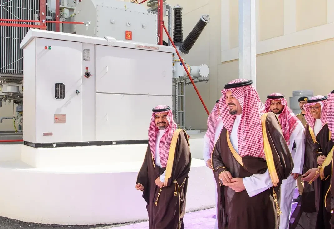 واطلع سموه ميدانيًّا على سير الأعمال ومستجدات التنفيذ، وتجاوزت نسبة إنجاز أعمال البنية التحتية في المشروع (50%)، إضافة إلى الوقوف على إحدى محطات تحويل الكهرباء الأربع (110 ك.ف)، التي تنفذها الشركة تحت إشراف الشركة الوطنية لنقل الكهرباء.