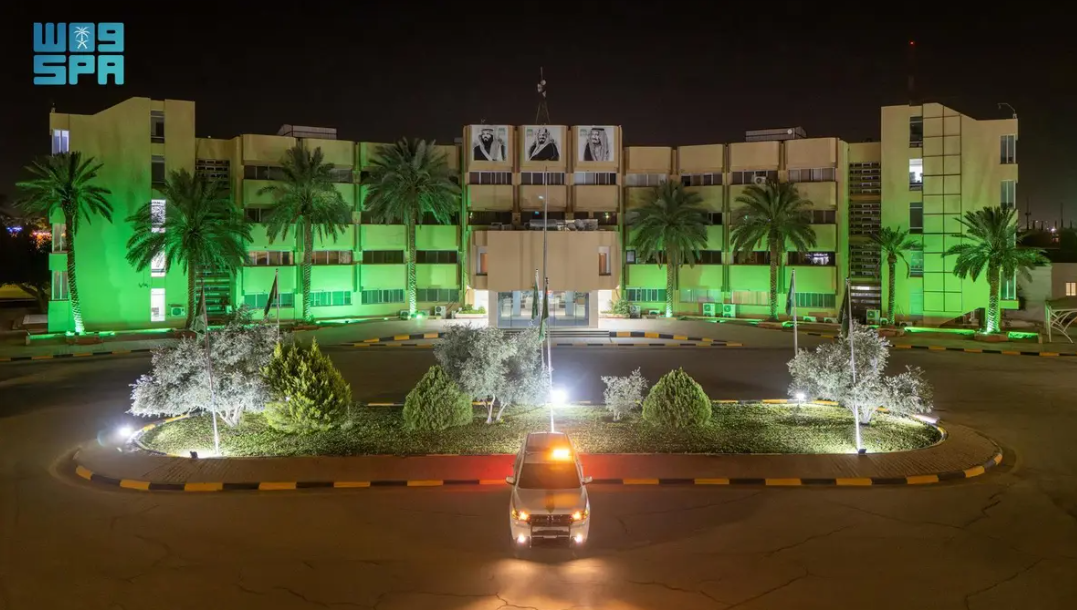 مبنى إمارة منطقة الجوف يكتسي اللون الأخضر احتفاءً بيوم التأسيس