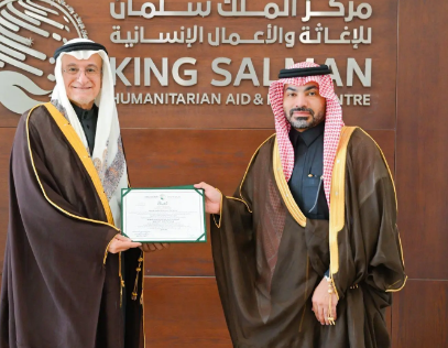 مركز الملك سلمان للإغاثة يسلم جمعية التنمية الزراعية بالمدينة المنورة شهادة الموافقة للعمل خارج المملكة