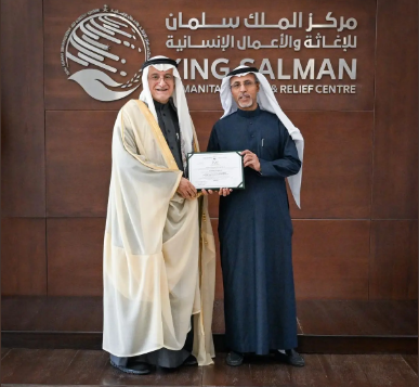 مركز الملك سلمان للإغاثة يمنح جمعية “وعي” شهادة العمل خارج المملكة