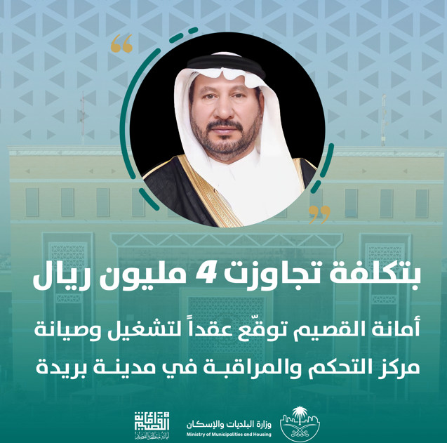 بتكلفة تجاوزت 4 مليون ريال.. #أمانة_القصيم توقّع عقداً لتشغيل وصيانة مركز التحكم والمراقبة في #بريدة