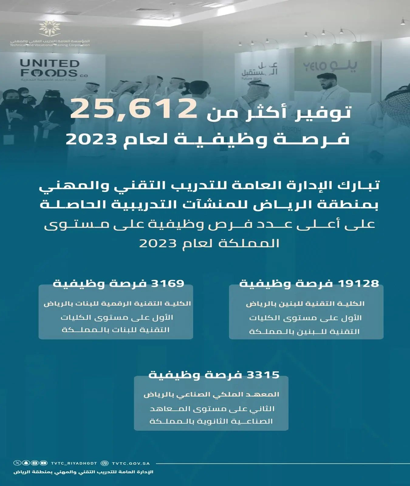 منشآت #التدريب_التقني بمنطقة #الرياض تتصدر في توفير الوظائف لعام ٢٠٢٣