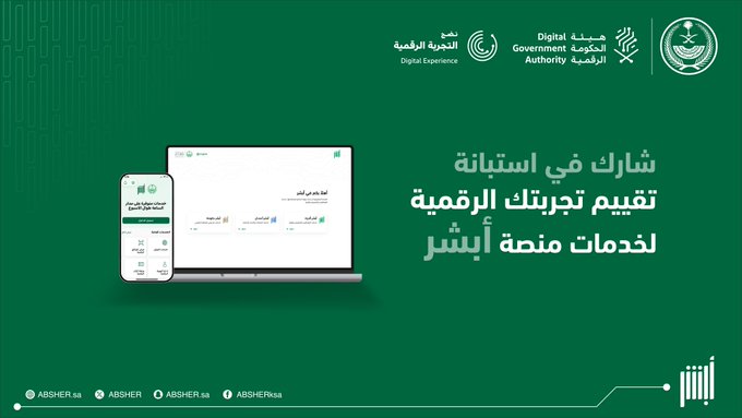 دعت منصة “أبشر” الإلكترونية عموم المستفيدين من خدماتها إلى المشاركة الفعالة في استبانة “قيم تجربتك الرقمية” لعام 2026، والتي تشرف عليها هيئة الحكومة الرقمية.
