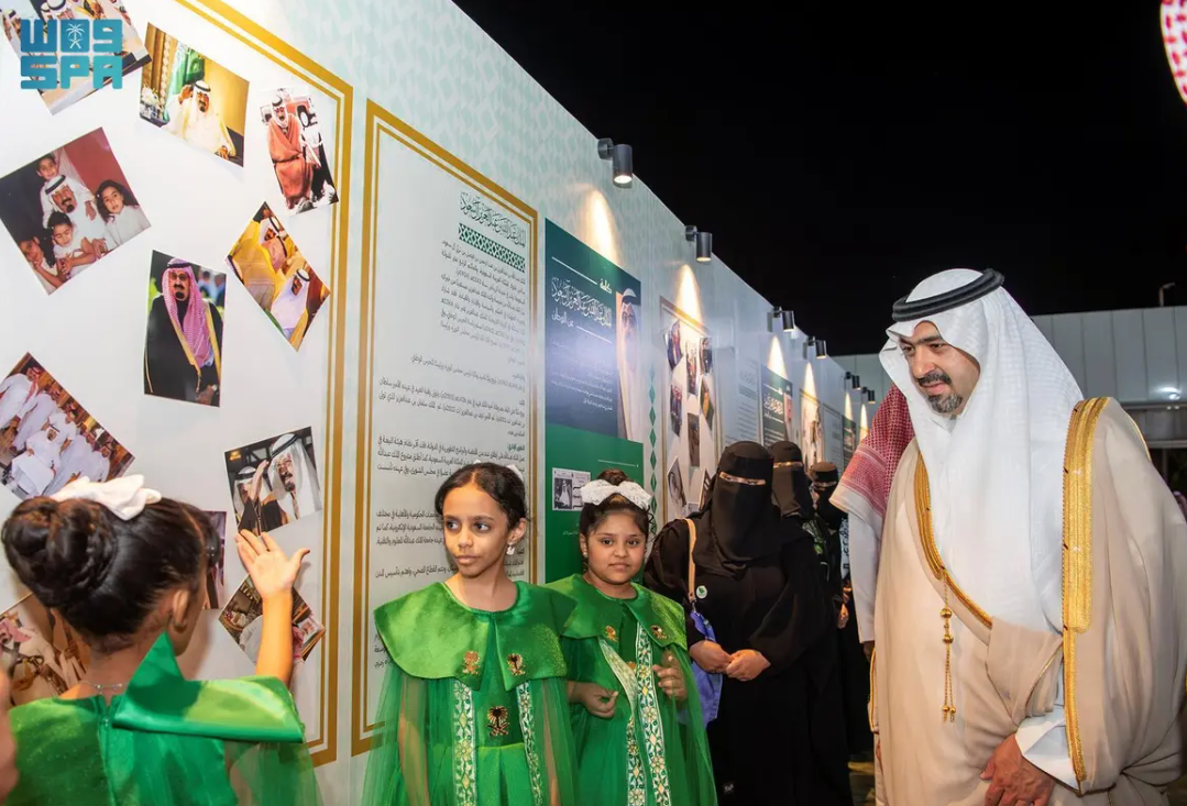 بعد ذلك تجول سموه بالمعرض المصاحب للاحتفال، ثم شاهد سموه مجموعة من الأنشطة التي تضم أعمالًا ومشاركات متنوعة تحكي مسيرة المملكة منذ توحيدها وحتى عهدنا الزاهر.