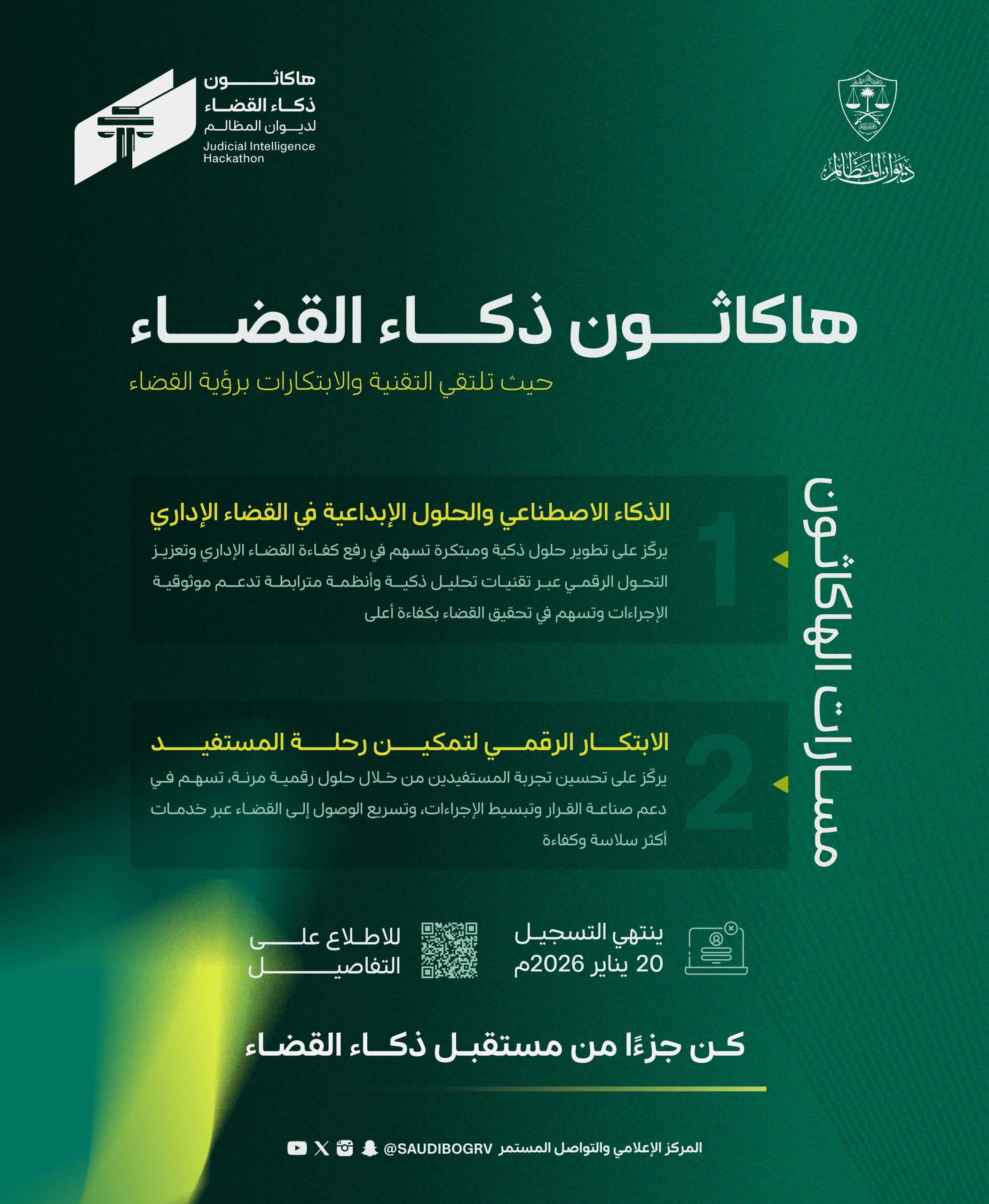 هاكاثون ذكاء القضاء بديوان المظالم يتجاوز مستهدف التسجيل ويعكس نضج التحول التقني