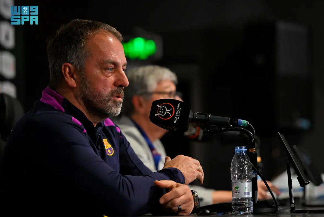 عُقد اليوم المؤتمر الصحفي الخاص بالمدير الفني لفريق برشلونة الإسباني هانسي فليك، للحديث عن مواجهة نصف نهائي كأس السوبر الإسباني، الذي سيجمع فريقي برشلونة وأتلتيك بلباو، وذلك على ملعب مدينة الملك عبدالله الرياضية.