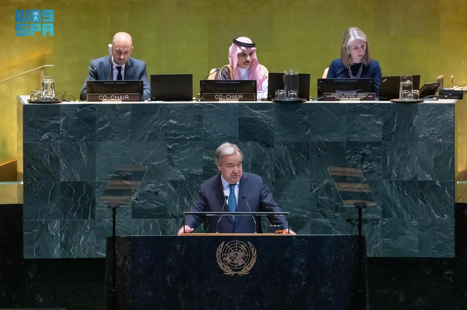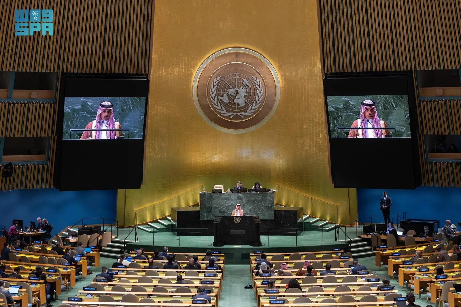 في 27 سبتمبر 2024، أعلن صاحب السمو الأمير فيصل بن فرحان بن عبدالله وزير الخارجية، باسم الدول العربية والإسلامية وعدد من الشركاء الدوليين، إطلاق “التحالف الدولي لتنفيذ حل الدولتين” على هامش اجتماعات الدورة التاسعة والسبعين للجمعية العامة للأمم المتحدة في نيويورك، مؤكدًا أن إقامة الدولة الفلسطينية المستقلة حق أصيل للشعب الفلسطيني وأساس لتحقيق السلام، داعيًا الدول كافة للاعتراف بفلسطين والانضمام إلى الإجماع الدولي الذي يضم 149 دولة اعترفت بها رسميًا.