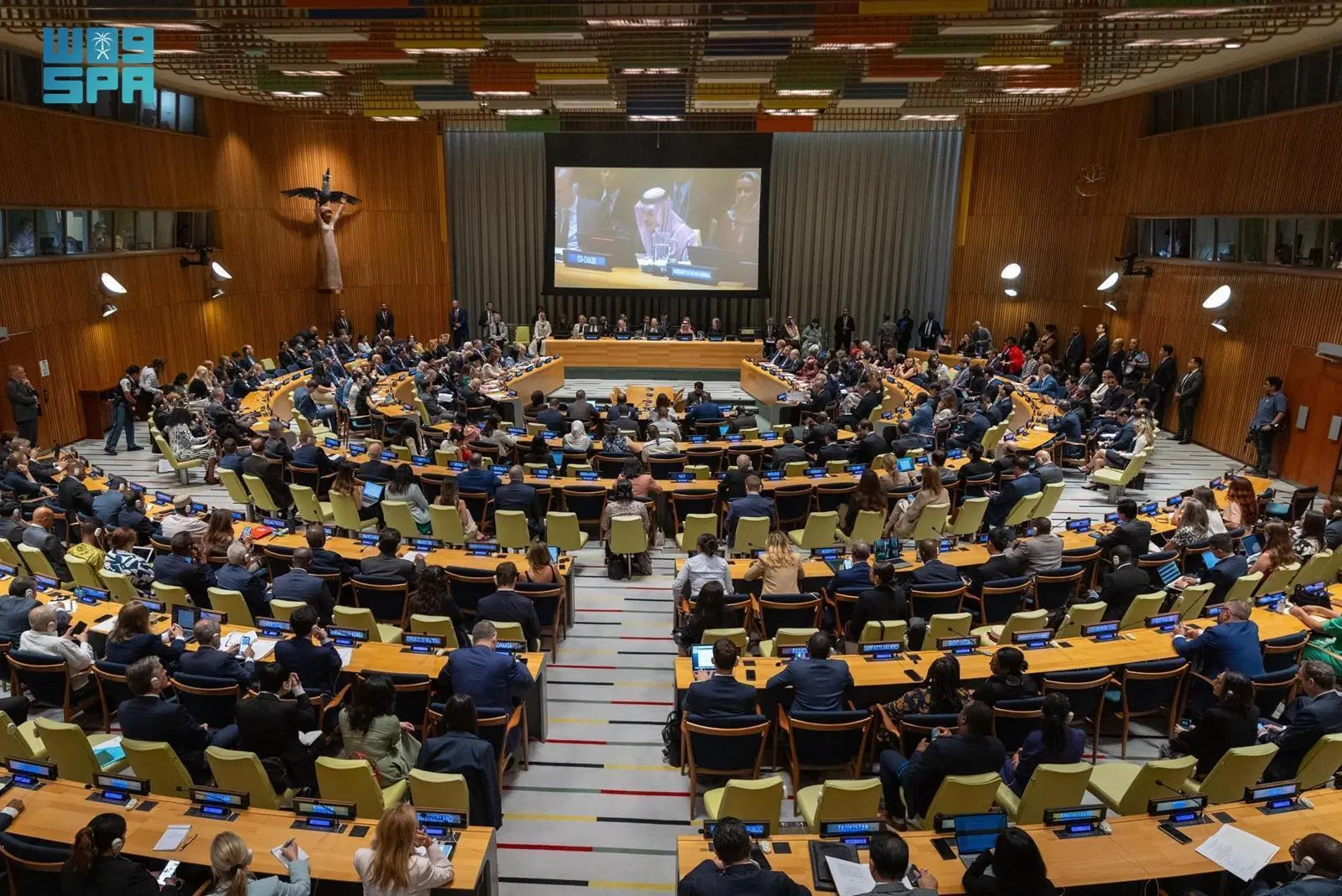 وقد تُوّجت هذه الجهود بقرار تاريخي حين أقرت الجمعية العامة للأمم المتحدة في 12 سبتمبر 2025 “إعلان نيويورك” المؤيد لحل الدولتين وإقامة الدولة الفلسطينية المستقلة بأغلبية 142 صوتًا، ورحبت المملكة بالقرار وعدّته تأكيدًا على الإجماع الدولي لدعم فلسطين وحقها في إقامة دولتها على حدود 1967 وعاصمتها القدس الشرقية، وحافزًا لمواصلة العمل المشترك.