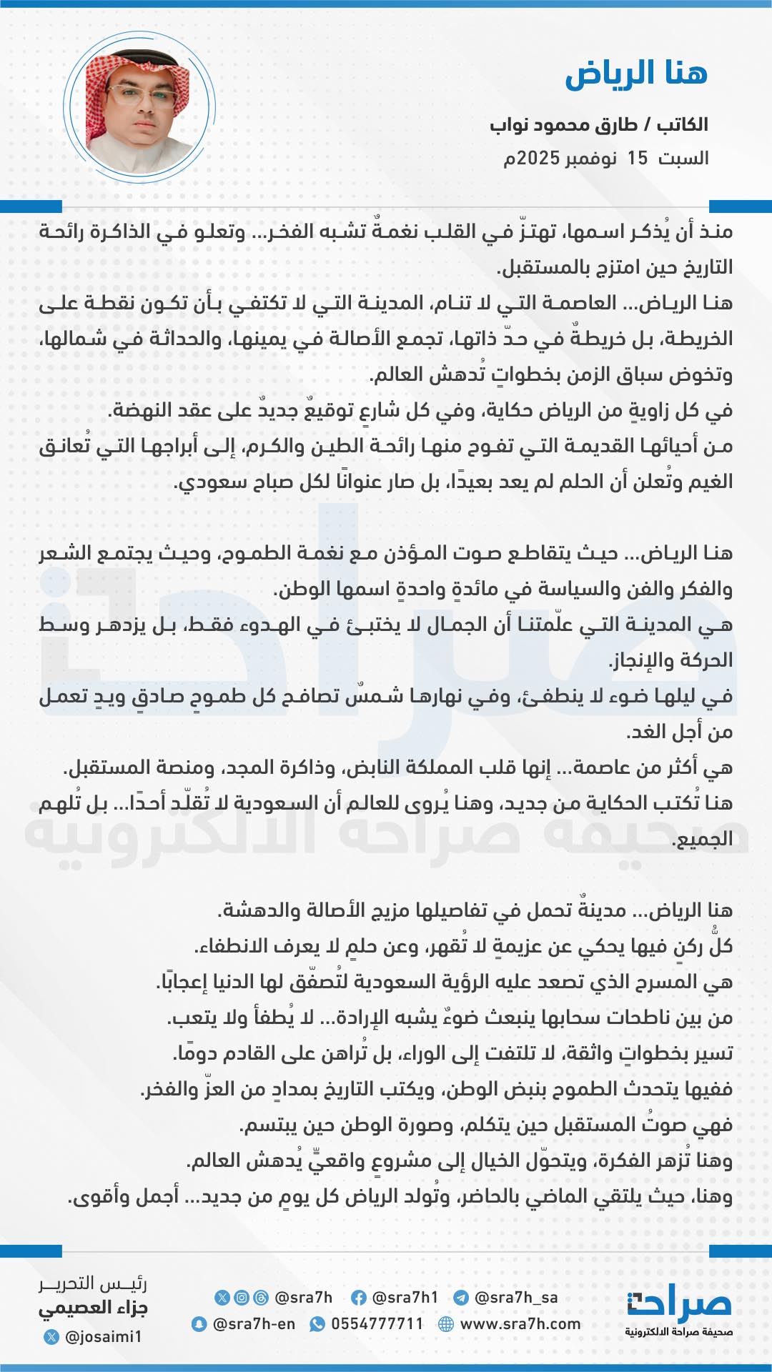 وهنا، حيث يلتقي الماضي بالحاضر، وتُولد الرياض كل يومٍ من جديد… أجمل وأقوى.