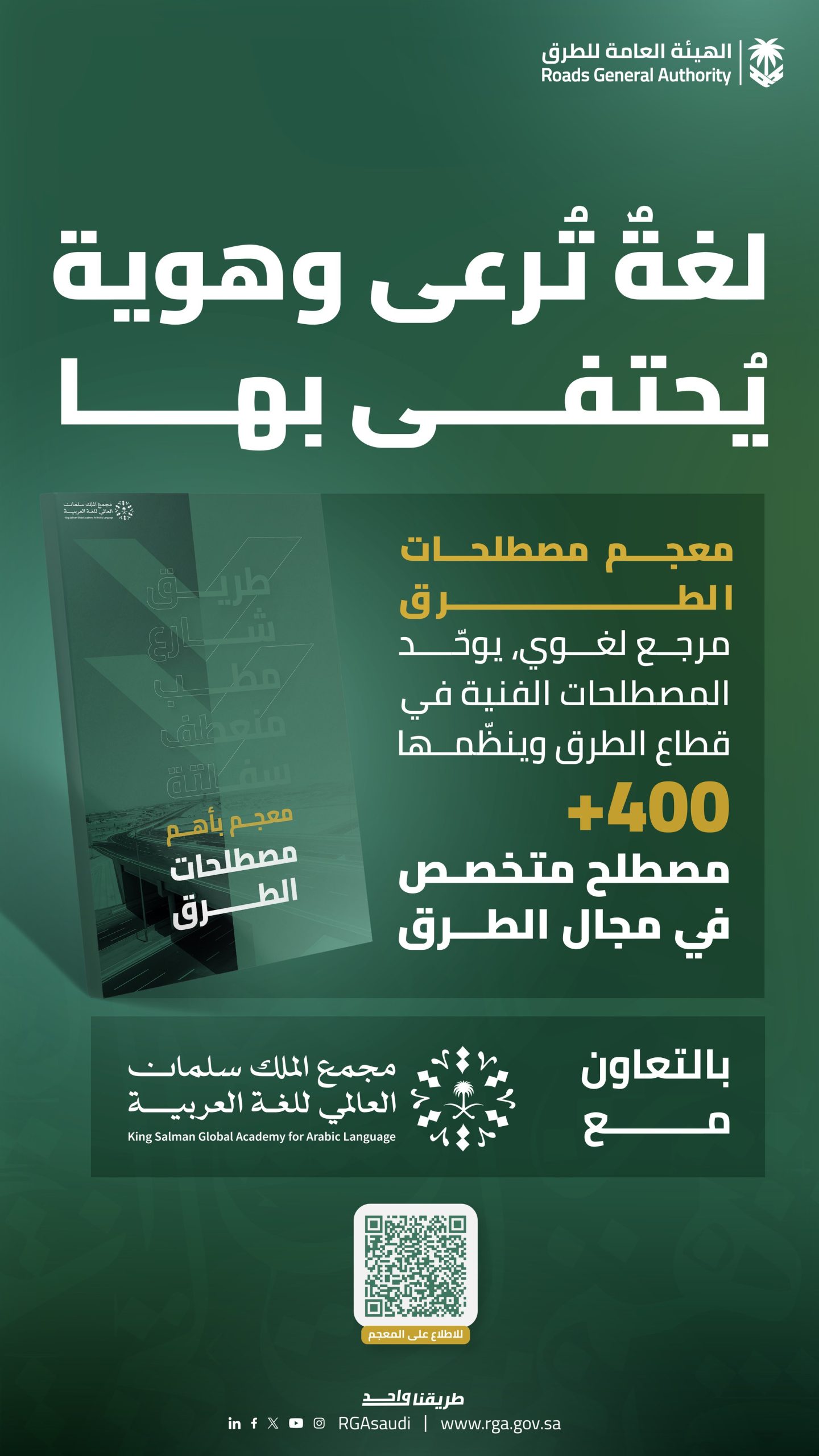 وأوضحت “هيئة الطرق” أن معجم مصطلحات الطرق يتضمن أكثر من (400) مصطلحٍ مختصٍ بقطاع الطرق، جرى إعدادها بالمواءمة التامة مع مجمع الملك سلمان العالمي للغة العربية، مع تقديم تعريفات دقيقة وشاملة لكل مصطلح.