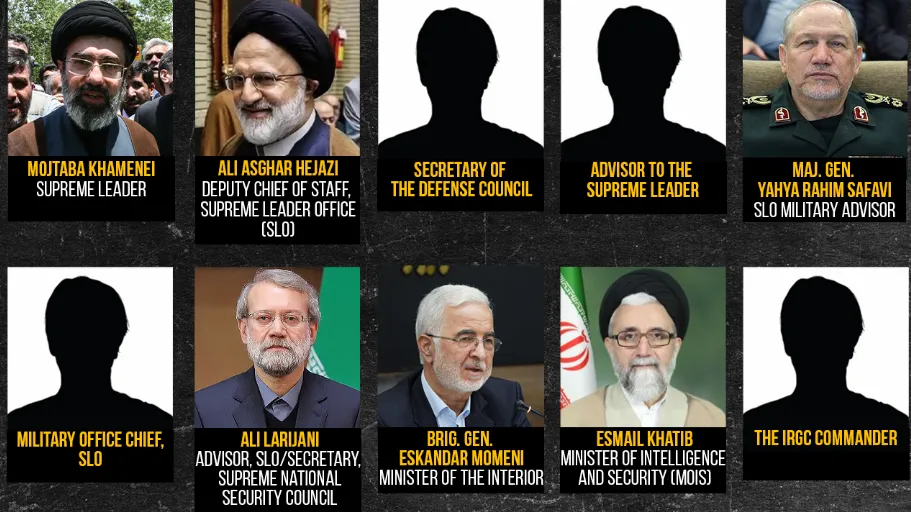 وشملت القائمة التي نشرها جهاز الأمن الدبلوماسي الأمريكي أسماء بارزة من بينها علي أصغر حجازي، نائب رئيس مكتب المرشد، وعلي لاريجاني المسؤول الأمني الرفيع، إلى جانب يحيى رحيم صفوي المستشار العسكري للمرشد. كما ضمت القائمة وزيري الداخلية والمخابرات الحاليين، ومسؤولين آخرين يشغلون مناصب حساسة في القيادة العسكرية والدفاعية الإيرانية.