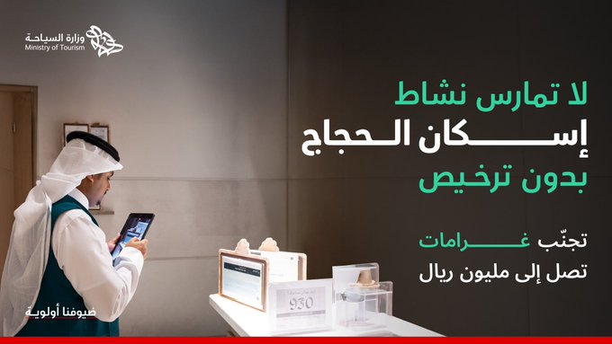 أكدت وزارة السياحة السعودية أن أي تشغيل لـ النزل المؤقتة لإسكان الحجاج دون ترخيص رسمي صادر عن الوزارة يُعد مخالفة نظامية، ويعرض المخالف للمساءلة القانونية وفرض العقوبات المقررة، والتي قد تصل إلى غرامات تصل إلى مليون ريال.